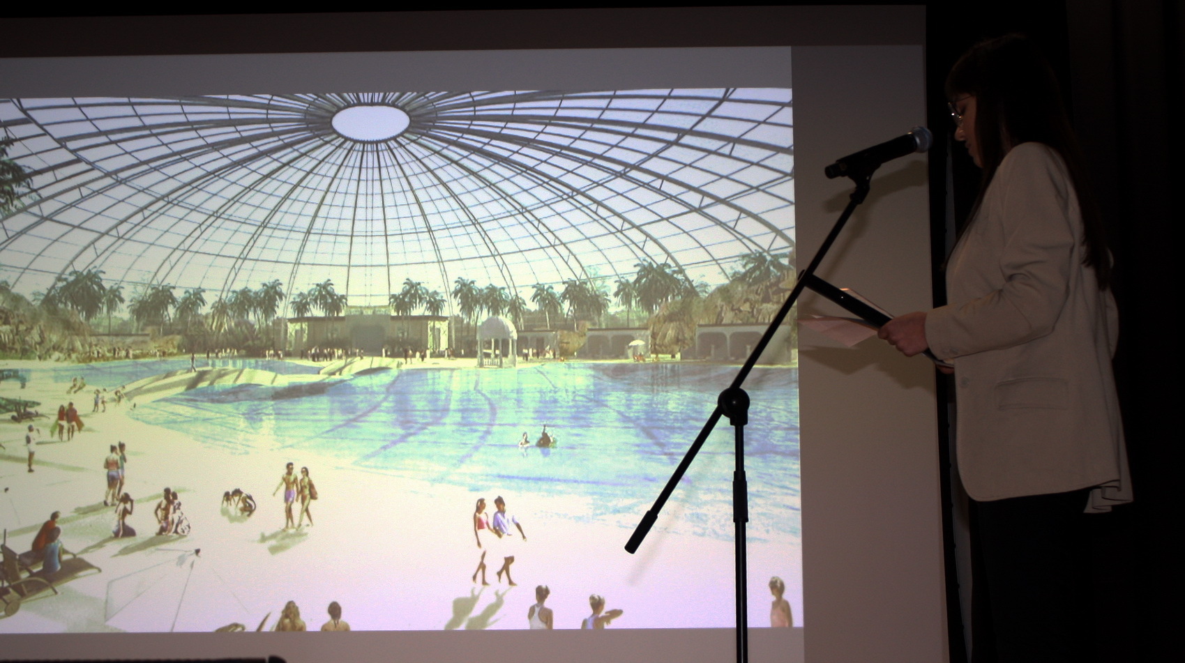 Проект Полины и Натальи – это сочетание городского комфорта и природной среды: «Преимущество территории, для которой мы искали новую концепцию, - парк, который создает уникальный микроклимат, атмосферу уюта и защищенности, является барьером от шума и ветра. Именно поэтому мы сохраняем значительную часть парка. Прогулочная аллея с анфиладой площадей соединяет улицу Ленина и водный диаметр. Для создания комфортной мы ставили перед собой определенные цели: безбарьерная среда, приобщение к спорту, оздоровление, активный и тихий отдых. На территории парка мы предусмотрели наземные парковки, наземно-крытый и подземный паркинг. Главная пешеходная аллея ведет к смотровой площадке, а второстепенная простирается вдоль набережной. Парк в нашем представлении должен отвечать требованиям излюбленного места для пешеходных и велосипедных прогулок. Территория набережной разделена на зону массовых мероприятий, активного и тихого отдыха. Функциональное зонирование объекта включает памятник строителей Солигорска, торговые павильоны, зону общественного питания, скейтпарк, детский городок, аттракционы, крытый павильон, волейбольный и футбольный манежи, игровые площадки, амфитеатр, гостиницу, общественные туалеты. Футбольный манеж представлен пятью надземными и подземным ярусами. Манеж – это формат сочетания футбольного стадиона и концертного зала. Путем трансформации зрительских мест и установки сцены происходит смена назначения зала, что позволяет проводить мероприятия разных форматов – от концертов до востребованных мультижанровых проектов, выставок, тренировок и сорвнований по многим видам спорта.