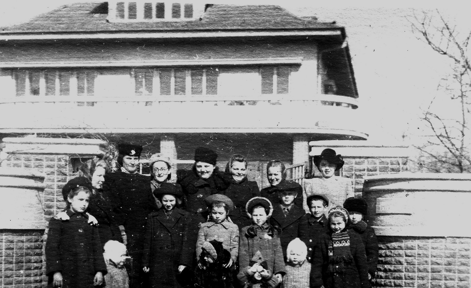 | Жители поселка Кашегавры на фоне особняка дипмиссии Франции. Фото 1949 г. |