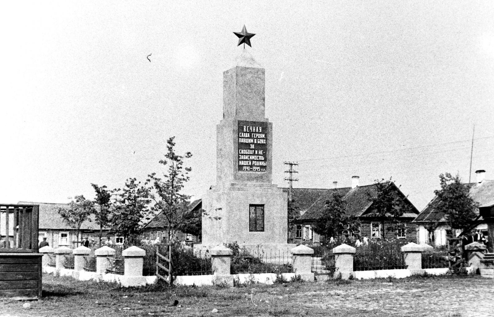 Первостепенными задачами в послевоенные годы являлись восстановление экономики и обеспечение населения жильем. Но героизм трагедии прошедшей войны не забывался. Поэтому неслучайным стало Постановление Совета Министров БССР и ЦК/б/Б от 14 мая 1946 г., которое обязывало благоустроить могилы воинов Красной Армии и партизан, погибших в боях Великой Отечественной войны, и возвести на них памятники. На зданиях, в которых размещались штабы фронтов, освобождавших Беларусь, предписывалось установить памятные доски, отметить памятными знаками города и села в бывших партизанских зонах.
