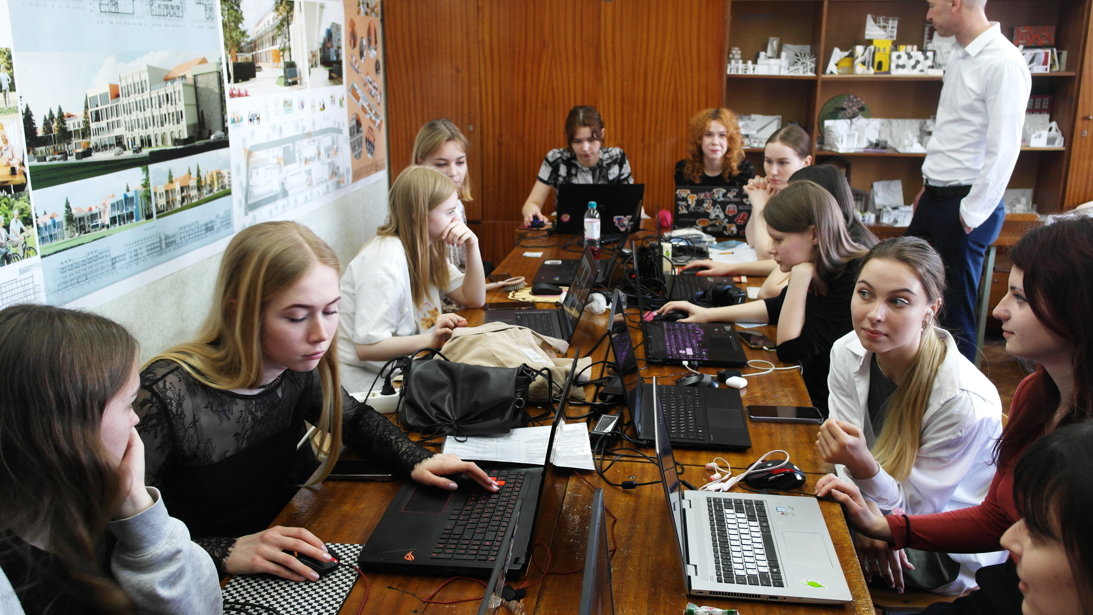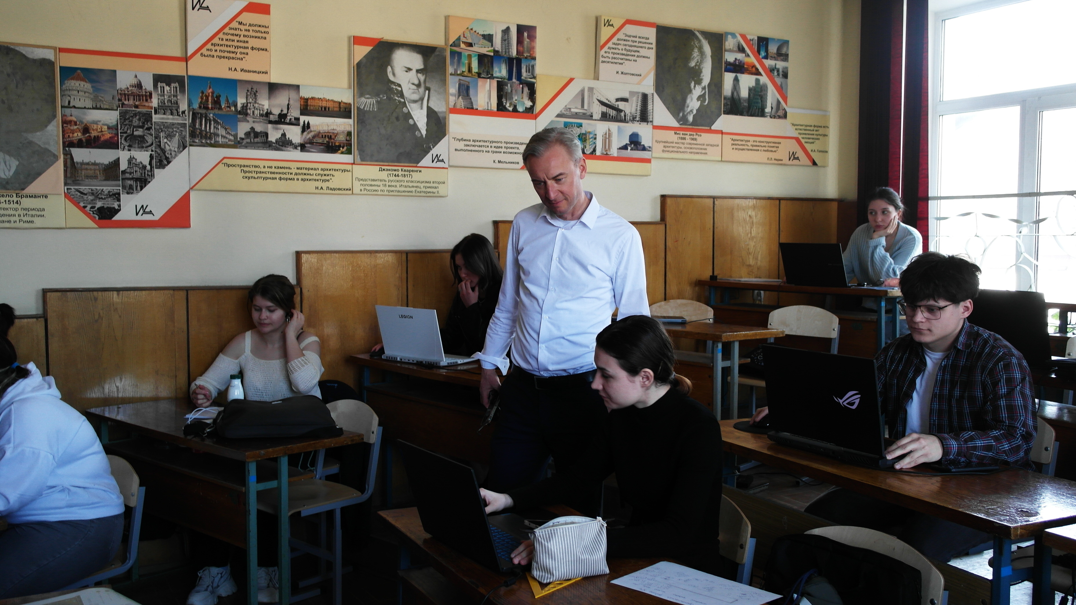 Экскурсию проводила председатель цикловой комиссии Карпович Елена Георгиевна. Начиная с выставки макетов на 3 этаже и архитектурного пространства 4 этажа. атмосфера творчества и креативности захватила гостей, многочисленные макетные работы, выполненные по курсовому проекту «Малоэтажный жилой дом» показали возможности учащихся в макетировании, работы по предмету «Архитектурная графика», наполнили холл 4 этажа удивительными графическими линиями. Гостей впечатлили дипломы разных лет. Учащиеся в аудиториях показывали свои работы, выполняемые на ноутбуках. Впечатленные увиденным архитекторы, по предложению директора, спустились в аудиторию, которая оборудована для проведения круглого стола.