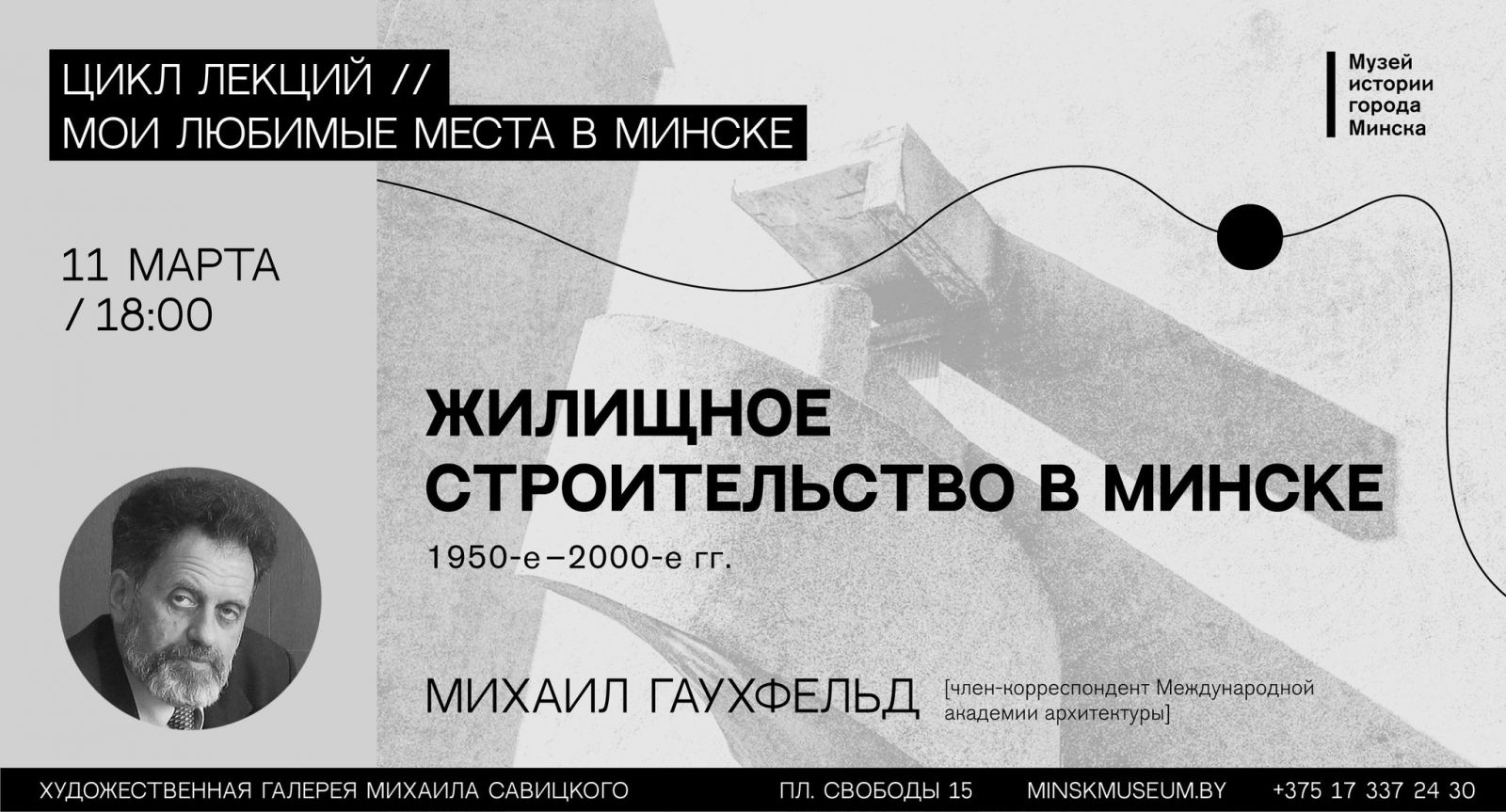 11марта (четверг) 2021 года в 18.00 выступление архитектора Михаила Гаухфельда продолжает цикл лекций «Мои любимые места в Минске».