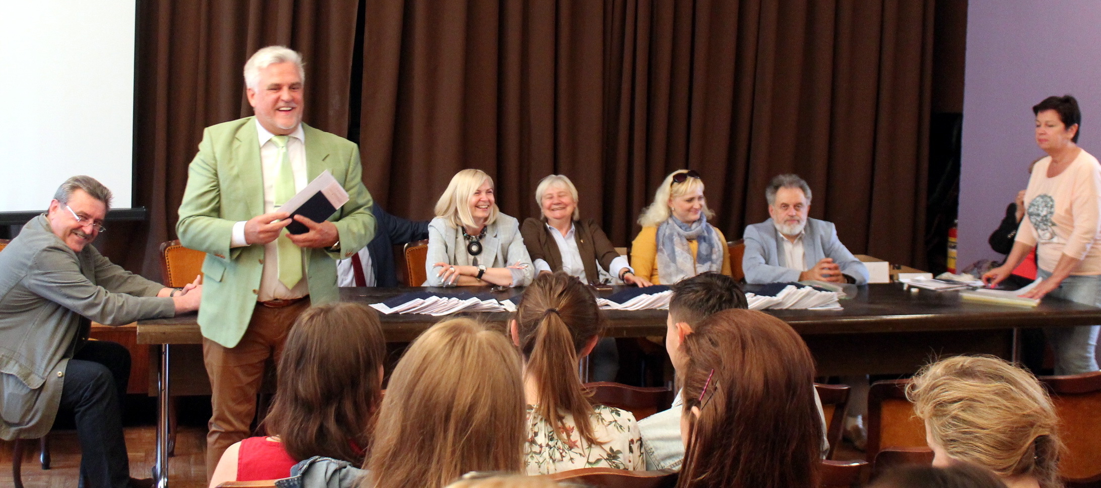 Новое пополнение армии архитекторов поздравляли и вручали дипломы декан архитектурного факультета А.С. Сардаров, заведующие кафедрами Г.А. Потаев, Н.А. Лазовская, А.А. Литвинова, а также члены правления Белорусского союза архитекторов М.Л. Гаухфельд, В.В. Дражин, Ю.А. Самойлик и А.П. Тельцов.