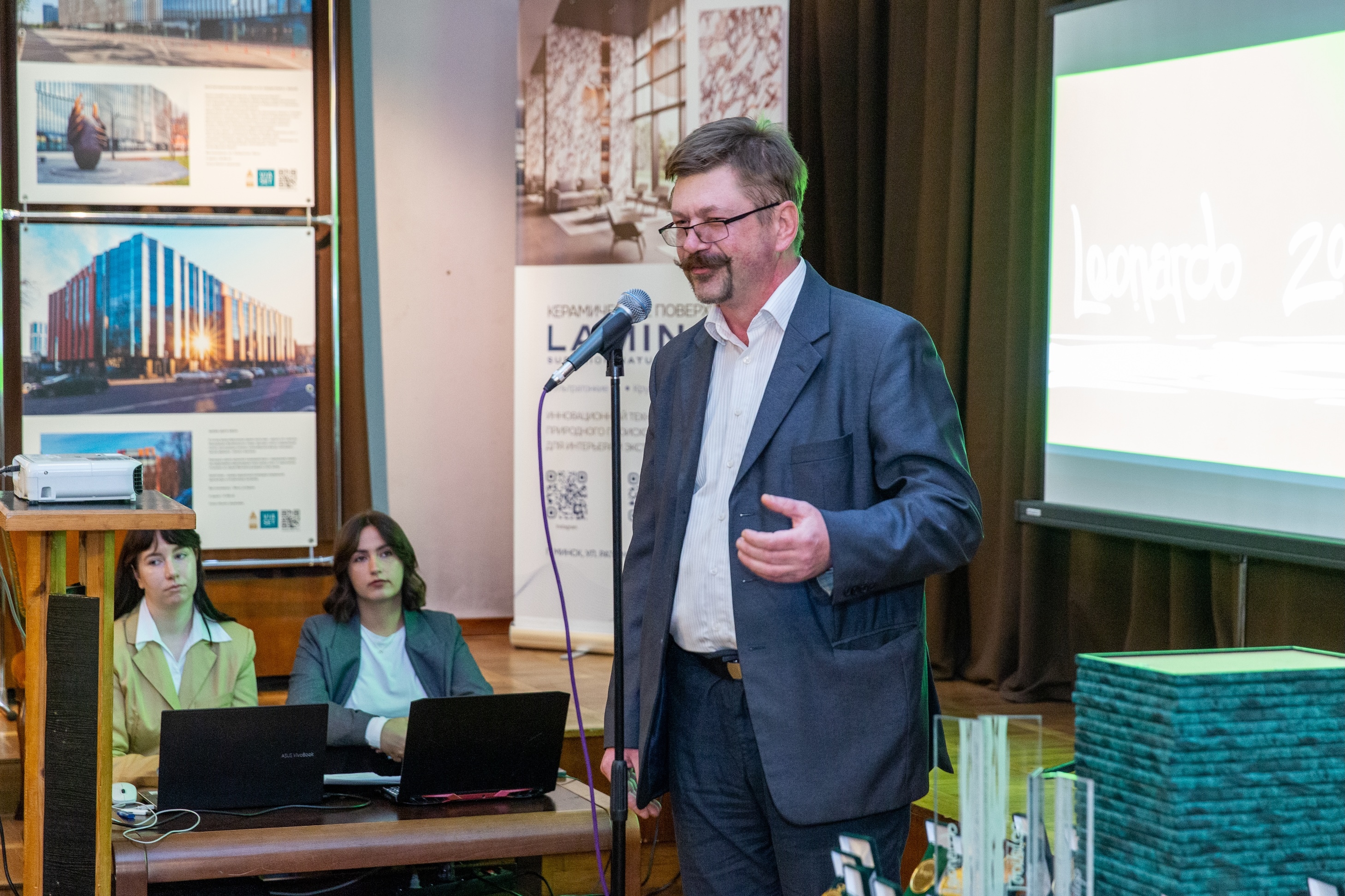 Награды вручили председатель Белорусского союза архитекторов Быковский Олег Михайлович и директор проекта Леонардо-2025 Соколов Дмитрий Владимирович.