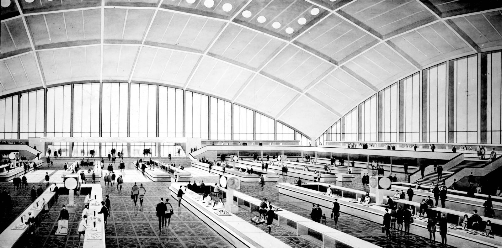 | Фото 14. Проект интерьера торгового зала крытого рынка «Комаровский» в Минске. Фото 1970-х гг. |