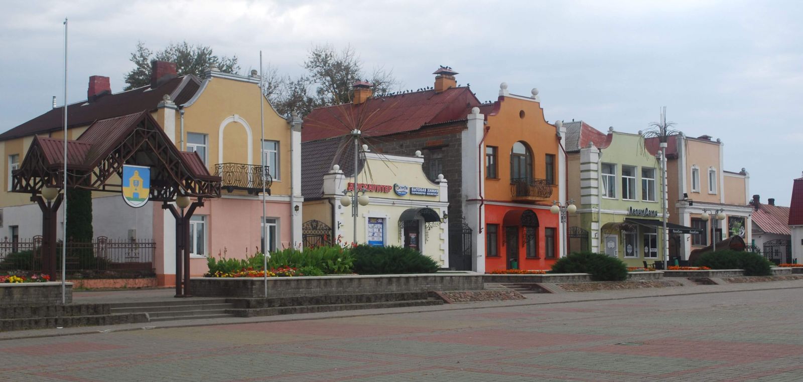| Фото 3. Жилые дома с «крамамі» на бывшем рынке в Дятлово |