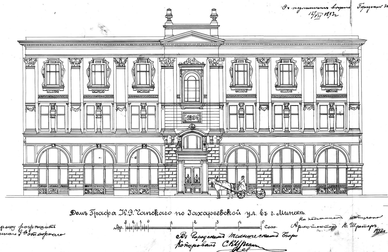 | Фото 8. Проект жилого дома с магазином на Захарьевской улице в Минске. 1893 г. |