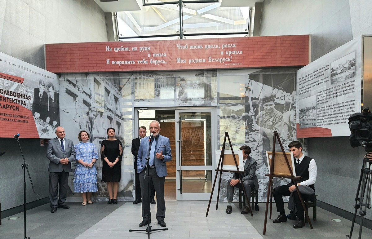 Торжественное открытие выставки переросло в интересное шоу, в котором сотрудники музея и другие приглашенные талантливо изображали архитекторов послевоенного Минска: В. А. Короля, Г. А. Парсаданова, Л. Д. Усову, Г. В. Сысоева и других.