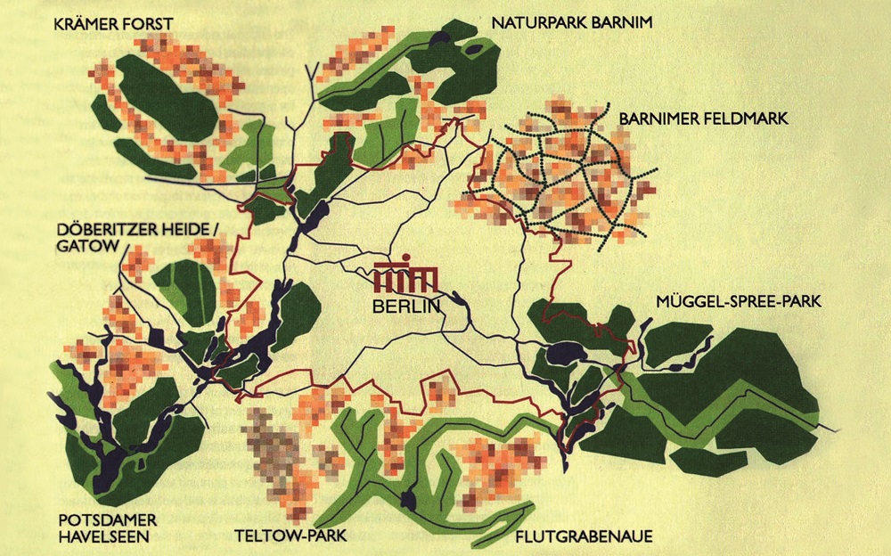 В ближайшем окружении Берлина, в радиусе 25–35 км, формируется пояс из 8 региональных парков общей площадью более 2000 км2.