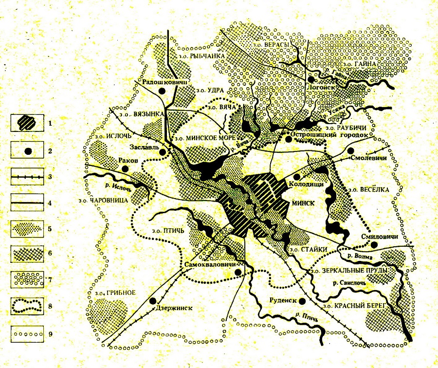 | 8. Схема размещения двух поясов ландшафтно-рекреационных территорий в пригородной зоне Минска |