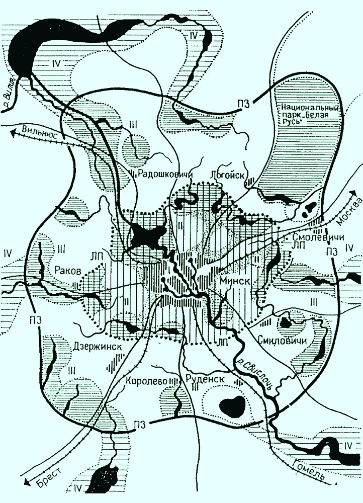 Одновременно с развитием Минска продумывалась стратегия совершенствования территориальной организации пригородной зоны. В схеме планировки пригородной зоны (Минскпроект, архит. Н. Трахтенберг, Э. Афанасьева, 1965 г.) было предусмотрено создание на малых реках искусственных водохранилищ (Волчковичское, Вяча, Острошицкое, Раубичское, Дубровское, Городище, Петровичи, Тростенецкое) и зон отдыха минчан.
