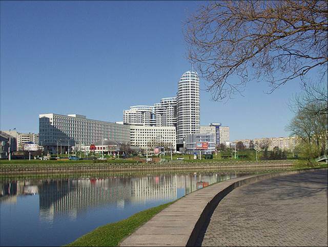 | Фото 11. Ансамбль жилых и общественных зданий рядом с гостиницей «Планета» на пр. Победителей в Минске (архит. В. Рондель и др.) |