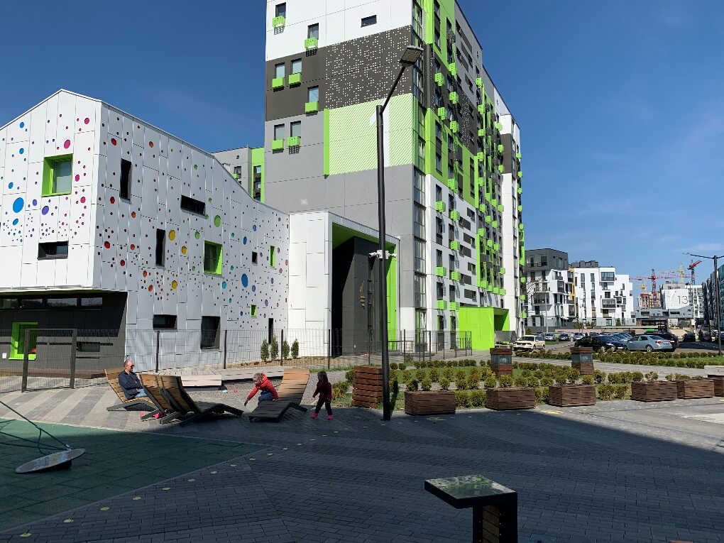 Внимание к деталям – характерная черта архитектурного облика жилого комплекса «Новая Боровая» в Минске. Вместе с жилыми домами сдавались в эксплуатацию озелененные и благоустроенные бестранспортные дворы с детскими игровыми и спортивными площадками, местами кратковременного отдыха, велопарковками. Во дворах удобная мебель и оборудование, в столики встроены розетки для подзарядки мобильных устройств.