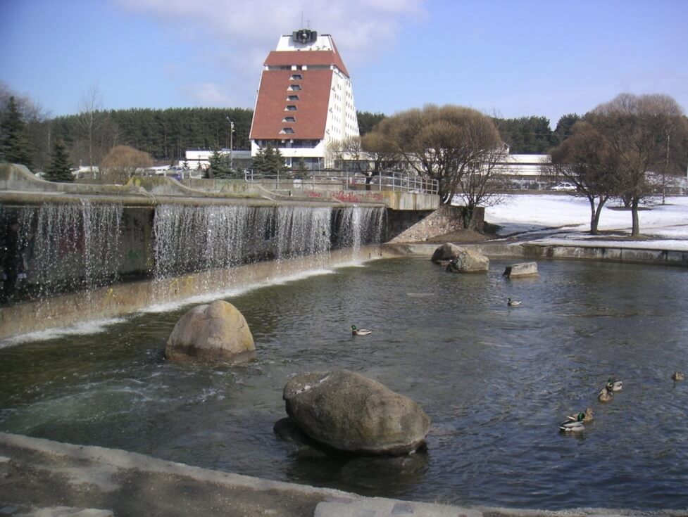 Фото 16. Каскад в составе Слепянской водно-парковой системы в Минске вблизи гостиницы «Агат», под которым есть пешеходный переход через реку |