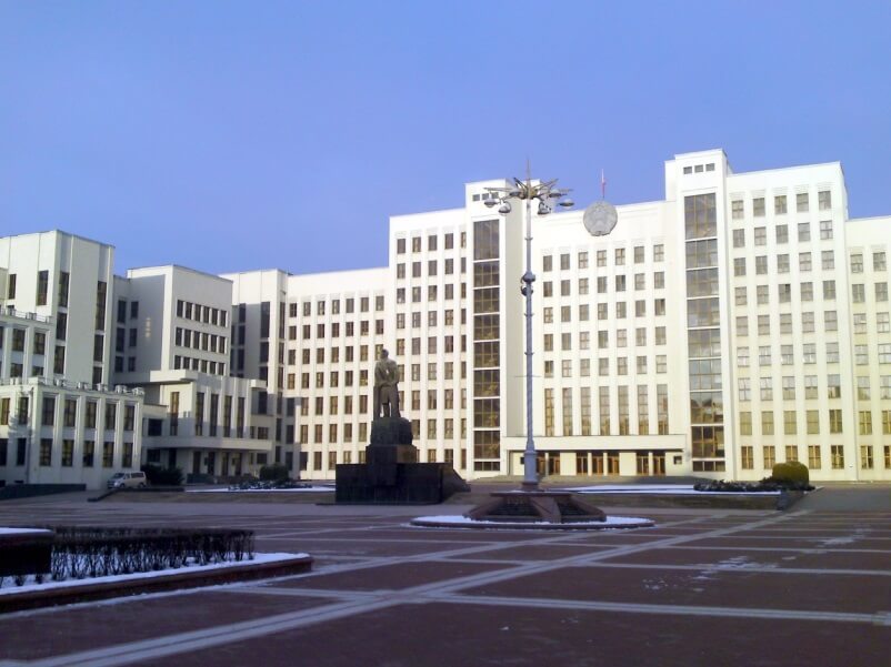 В 1930-е гг. в центральной части Минска появилось несколько крупных общественных зданий, которые стали композиционными центрами новых архитектурных ансамблей. Это Дом правительства, Дом Красной армии, Большой театр оперы и балета, Академия наук (архит. И. Лангбард и Г. Лавров), здание ЦК КП(б)Б, Дворец пионеров, гостиница «Беларусь» (архит. А. Воинов и В. Вараксин), городская библиотека (архит. Г. Лавров) .
