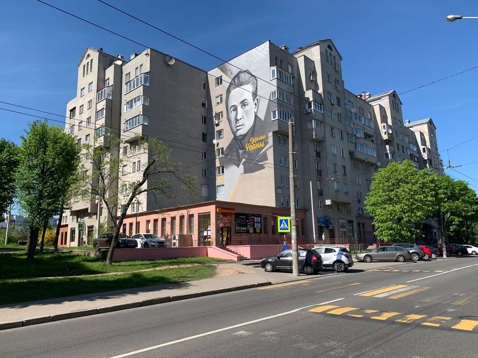| 18. Фреска на здании с изображением писателя Кузьмы Чорного, именем которого названа улица, Минск, Беларусь |