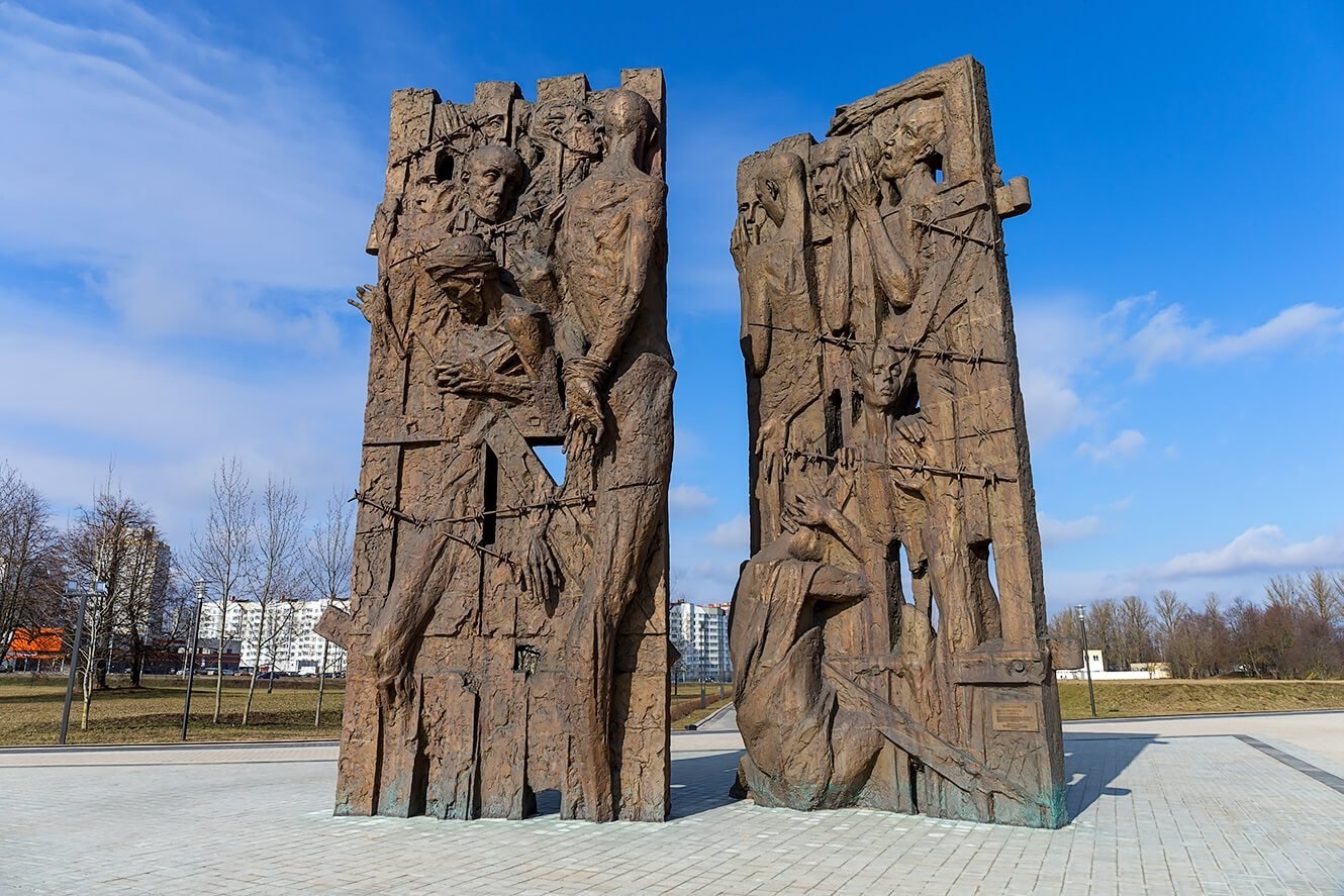 На бронзовых створках ворот изображены врезанные в колючую проволоку 29 фигур узников лагеря смерти. Монумент высотой 10 м и весом более 35 т – визуализированная память и напоминание современникам и грядущим поколениям о преступлениях фашизма, о страданиях и мужестве погибших. В образе врат есть умышленная недосказанность. Она важна для того, чтобы зритель, сопереживая, домысливал за художника, являясь сотворцом и соратником в сохранении памяти. За выдающийся творческий проект доценту кафедры скульптуры Белорусской государственной академии искусств Константину Костюченко присуждена Государственная премия в области литературы, искусства и архитектуры за 2020 г.