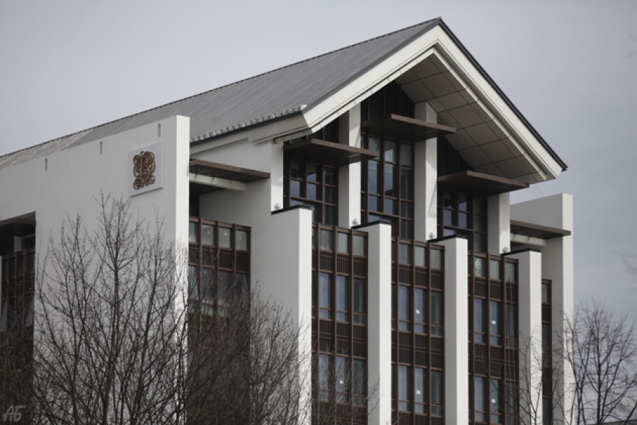 Перед началом строительства инвестор уведомил, что их проект разработан в лучших традициях китайской архитектуры согласно самым высоким требованиям гостиничных стандартов. Архитектура действительно достойная, из общей картины выбивается своей необоснованной вычурностью логотип отеля и материал отделки подпорных стенок, не соответствующий заявленным 5 звездам.