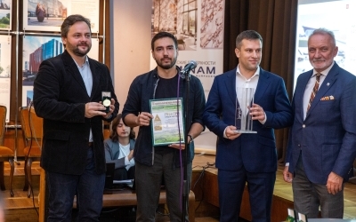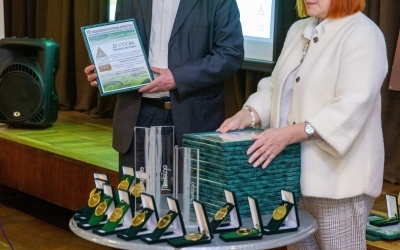 Награды вручили председатель Белорусского союза архитекторов Быковский Олег Михайлович и директор проекта Леонардо-2025 Соколов Дмитрий Владимирович.