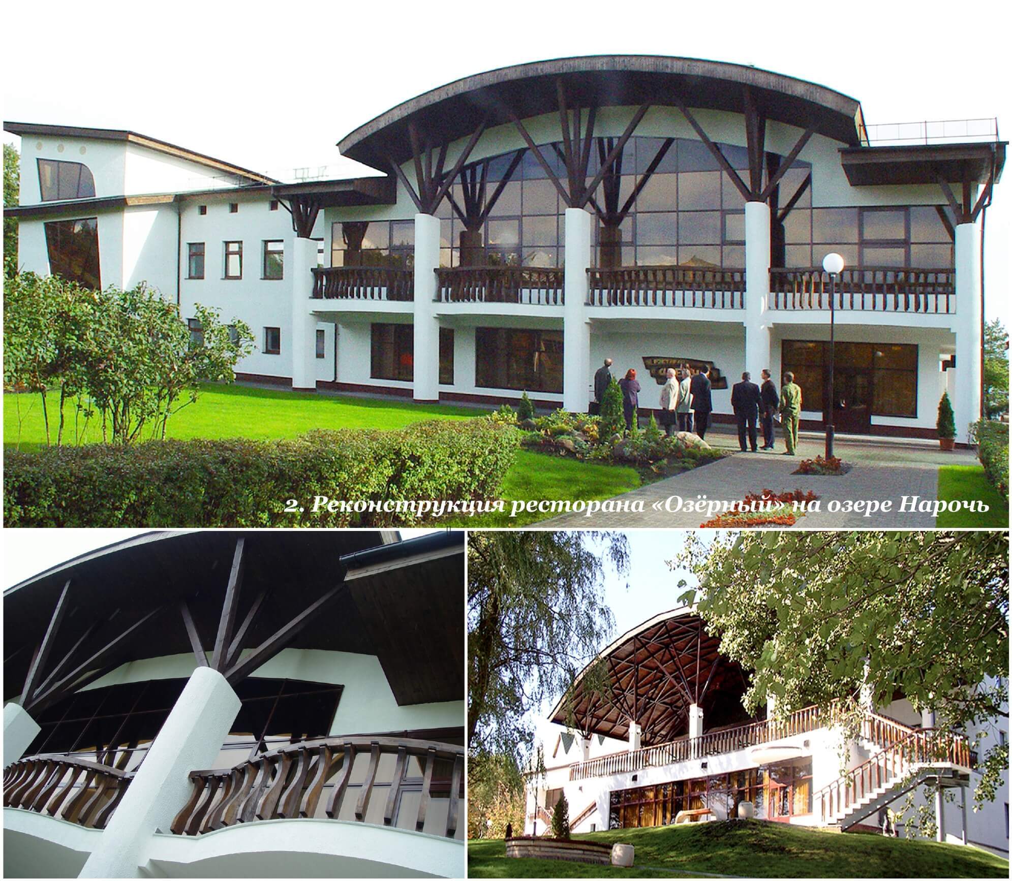 - Реконструкция ресторана «Озерный» на озере Нарочь. Постройка 2003 год.