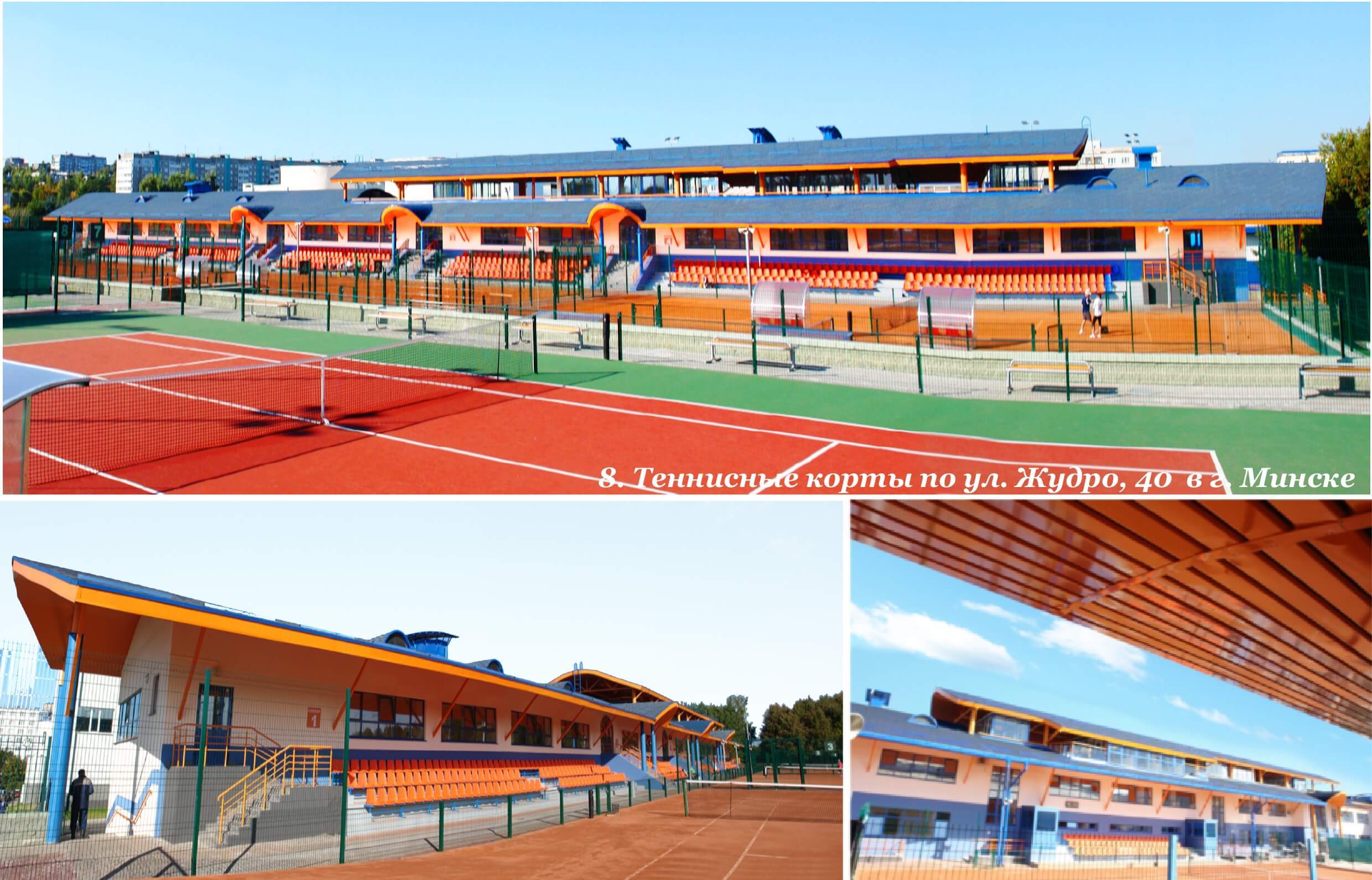 - Теннисные корты по ул. Жудро,40 в г. Минске. Вспомогательный корпус с административными помещениями и трибунами. Постройка 2010 год.