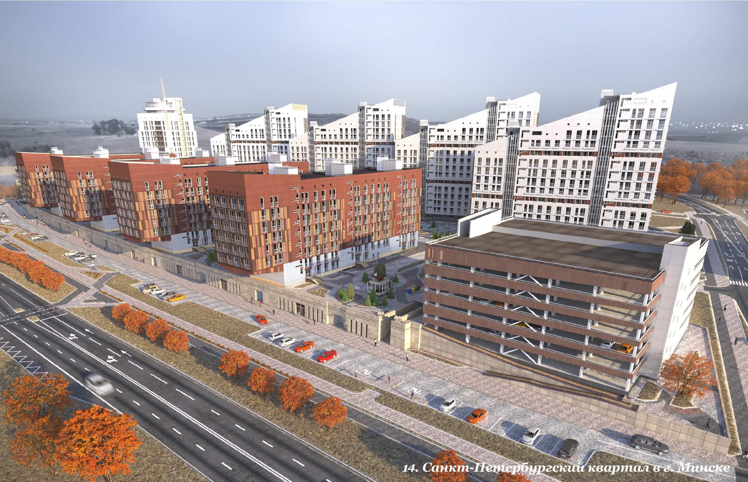 - Санкт-Петербургский квартал в г. Минске. Проектирование 2018-2021 г.г. Краткая информация: в 2017 состоялся «перекрестный» международный конкурс, где архитекторы г. Минска предложили градостроительную концепцию по застройке жилого квартала в г. Санкт-Петербурге, а архитекторы Санкт-Петербурга – градостроительную концепцию по застройке жилого квартала в г. Минске. На конкурс были представлены восемь градостроительных концепций, по четыре от каждой стороны. Определились победители – это ОАО «Институт «Минскгражданпроект», г.Минск и «Студия 17», г. Санкт-Петербург. Согласно условиям конкурса, архитекторы г. Минска развивают концепцию Санкт-Петербурга, разрабатывают проект и реализуют в построечных условиях, а архитекторы Санкт-Петербурга развивают концепцию Минска, разрабатывают проект и реализуют в построечных условиях.