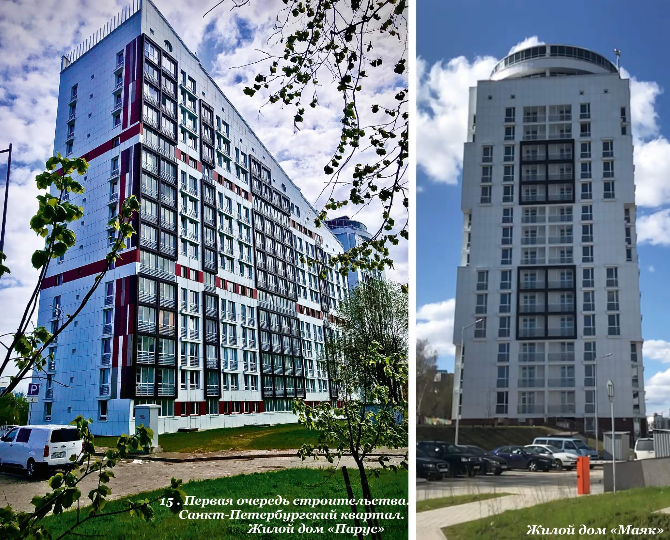 - Санкт-Петербургский квартал в г. Минске. Жилые дома «Маяк» и «Парус», 1-ая очередь строительства. Постройка 2019-2022 годы.