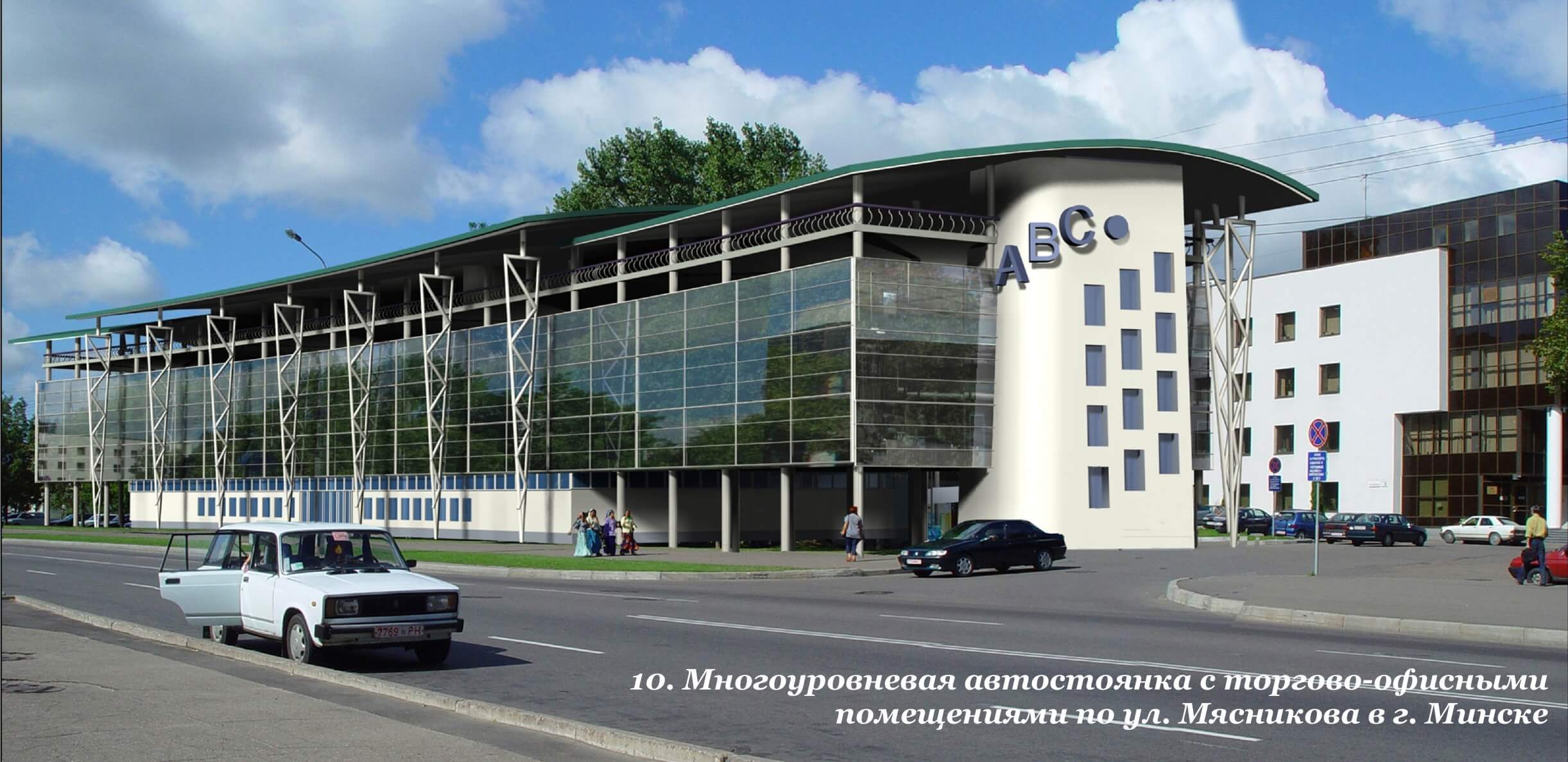 - Многоуровневые автостоянки с торгово-офисными помещениями по ул. Мясникова в г. Минске. Проект 2005 год.