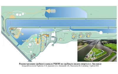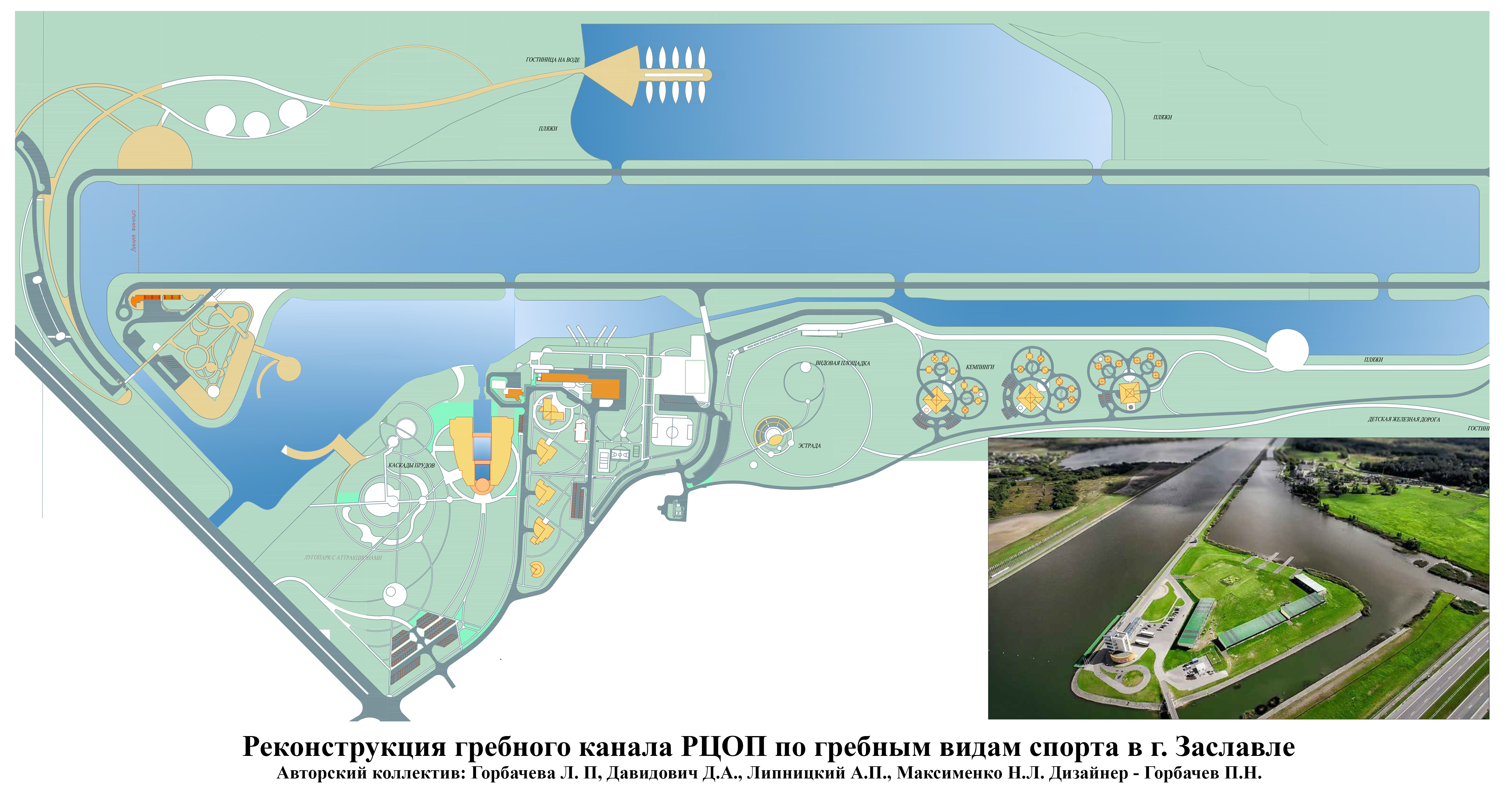 - Реконструкция гребного канала РЦОП по гребным видам спорта в г. Заславле. Авторский коллектив: Горбачева Л.П., Давидович Д.А., Липницкий А.П., Максименко Н.Л.Дизайнер- Горбачев П.Н.