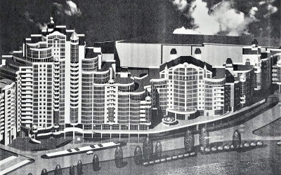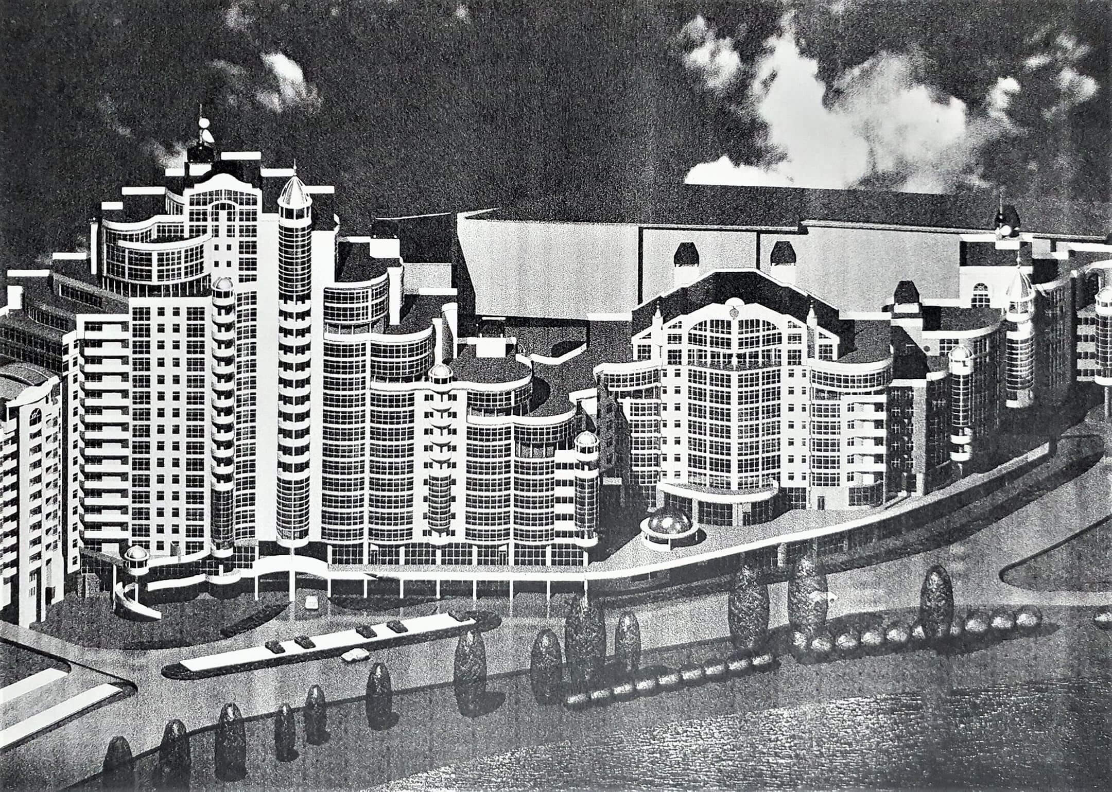 2000 г. жилая застройка вдоль р. Свислочь в г. Минске. Диплом 10-го Республиканского Фестиваля архитектуры в г. Бресте. Авторы: Ладкин О. А., Косачук А.В., Ладкин А.О., 5.