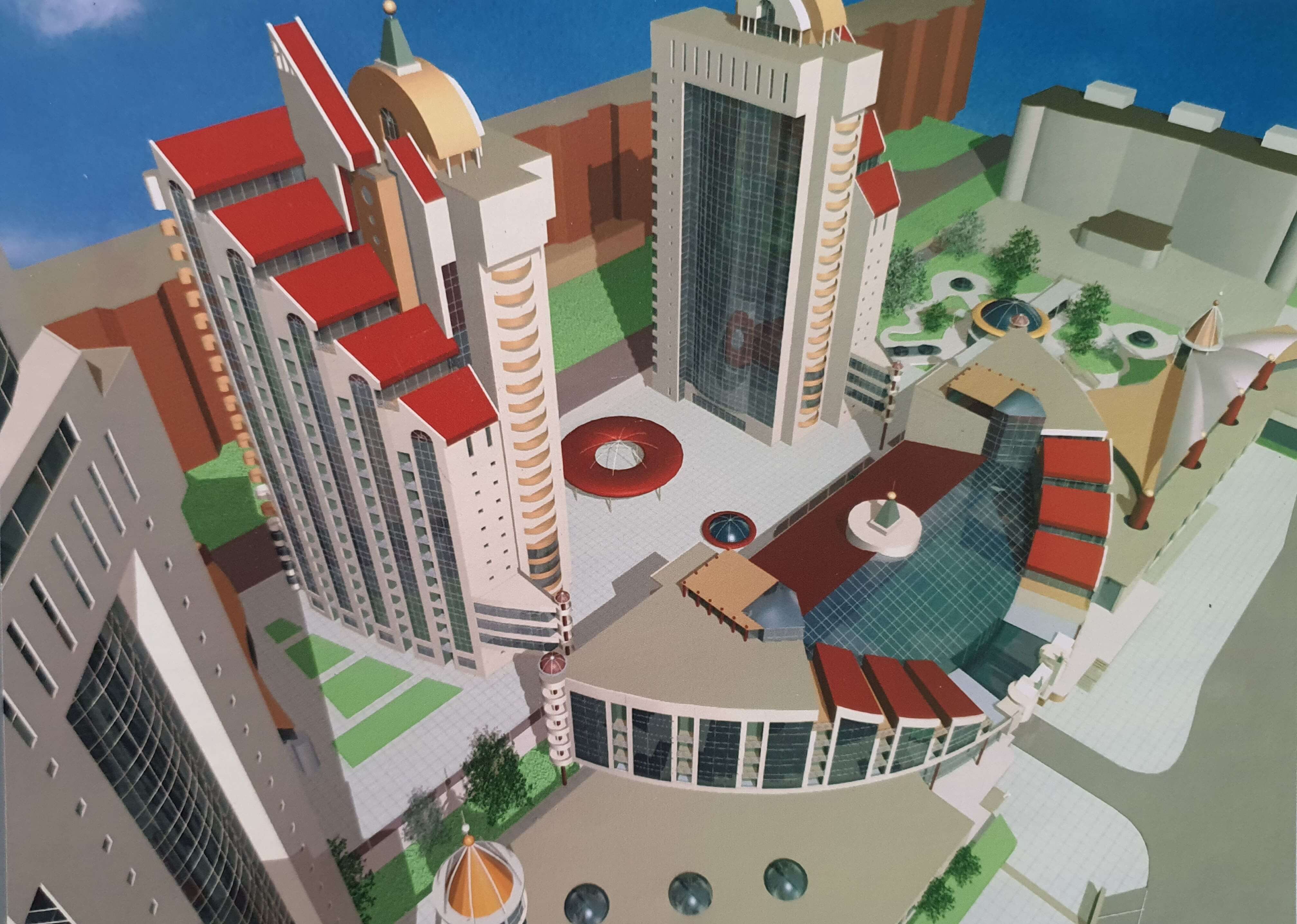1998 г. проект информационного центра СМ БССР по ул. Берсона. Одобрен архитектурно-техническим Советом ГПИ «Минскпроект» с горячей поддержкой Г.В. Заборского, присутствовавшего на Совете – не реализован.