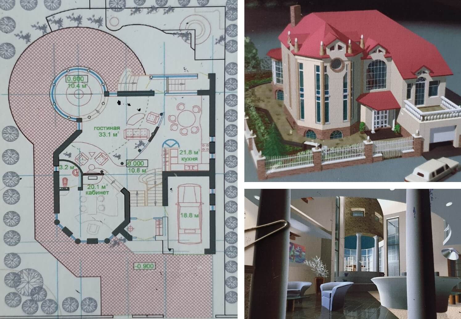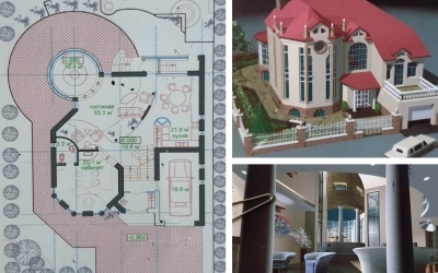 2002 г. жилой коттедж на затесненном участке с беседкой, включенной в состав дома с сауной и бассейном по ул. Волго-Донской № 19 в г. Минске. Диплом 10-го Республиканского смотра-конкурса лучших архитектурных произведений года в городе Минске, 14.