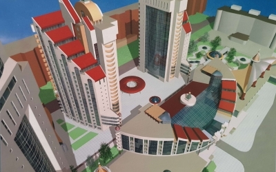 1987 г. комплекс торговых, бытовых и общественных помещений в микрорайоне «Зелёный луг-6» в г. Минске – реализованный.