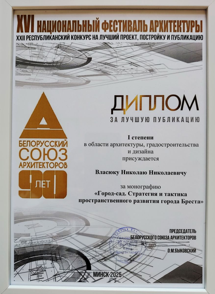 | Детальный план регенерации застройки исторического центра города Гродно (диплом 1ст., медаль на Международном бьеннале молодых архитекторов «Леонардо 2005» (Власюк Н.Н., Омельчук Н.А.); |