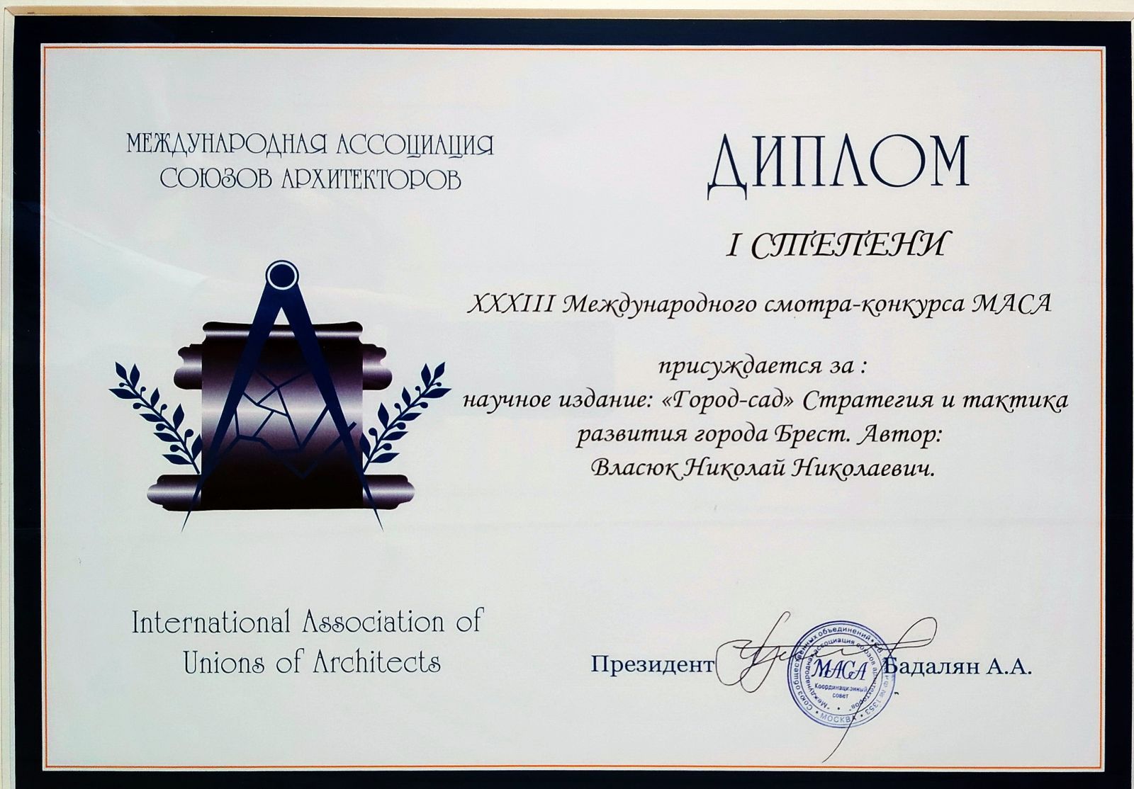 - кандидат архитектуры, доцент, проф. Международной Академии Архитектуры (МААМ), проф. кафедры «Архитектура» БрГТУ