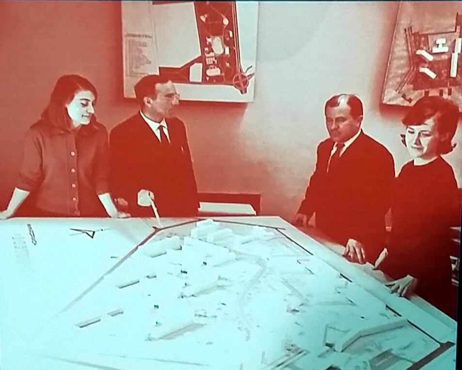 Куратор белорусского раздела выставки историк архитектуры Дмитрий Задорин. Он собрал копии фотографий авторских эскизов, фото с макетов и реализованных объектов из госархивов, архивов ведущих проектных институтов того времени. На некоторых фотографиях можно увидеть знакомые объекты и даже лица.