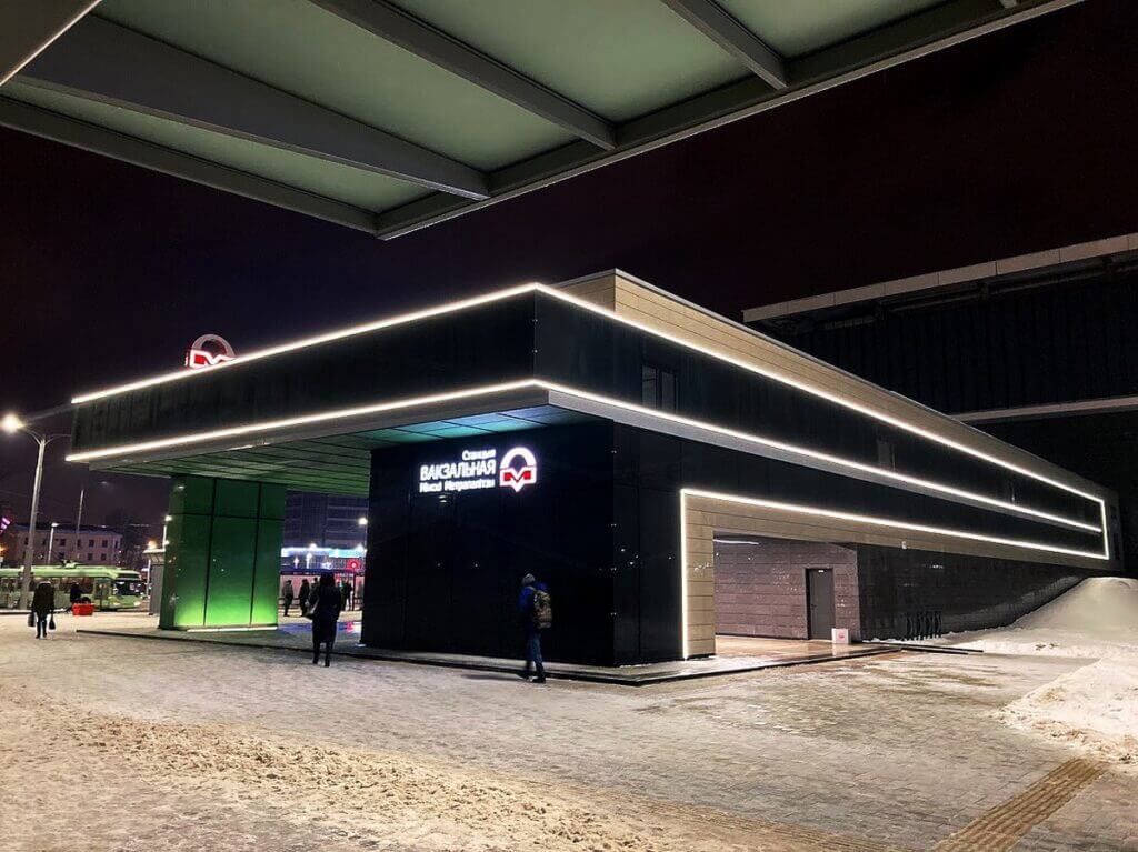 Станция метро «Вокзальная» имеет в своем составе наземный вестибюль.