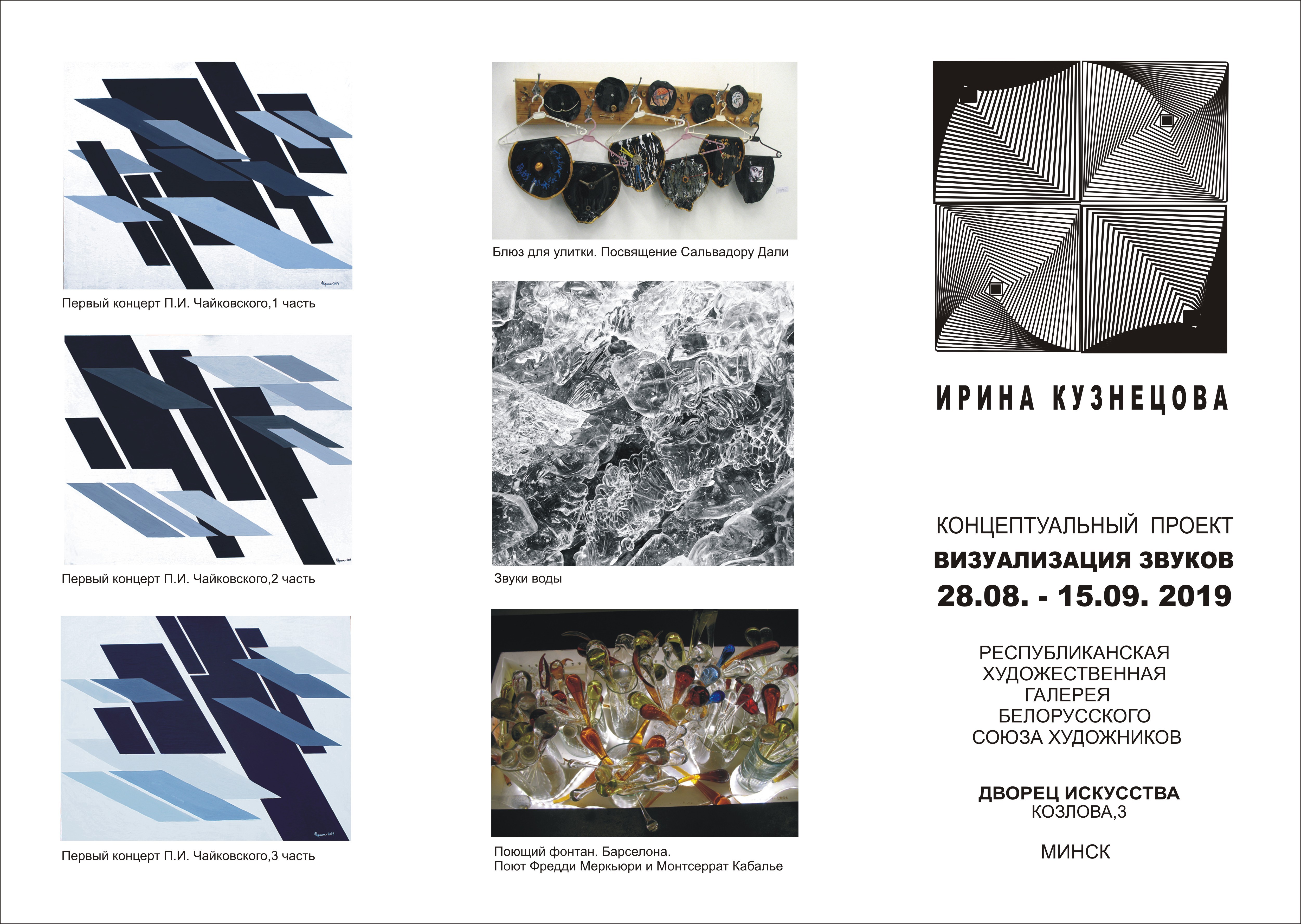 28 жніўня 2019 года а 17 гадзіне ў Рэспубліканскай мастацкай галерэі (Палац мастацтва, вул. Казлова, 3) адбудзецца адкрыццё выставы беларускага мастака і дызайнера Ірыны Кузняцовай пад назвай “Візуалізацыя гукаў”, прымеркаванай да юбілею майстра і арганізаванай ГА “Беларускі саюз мастакоў”, Рэспубліканскай мастацкай галерэяй.