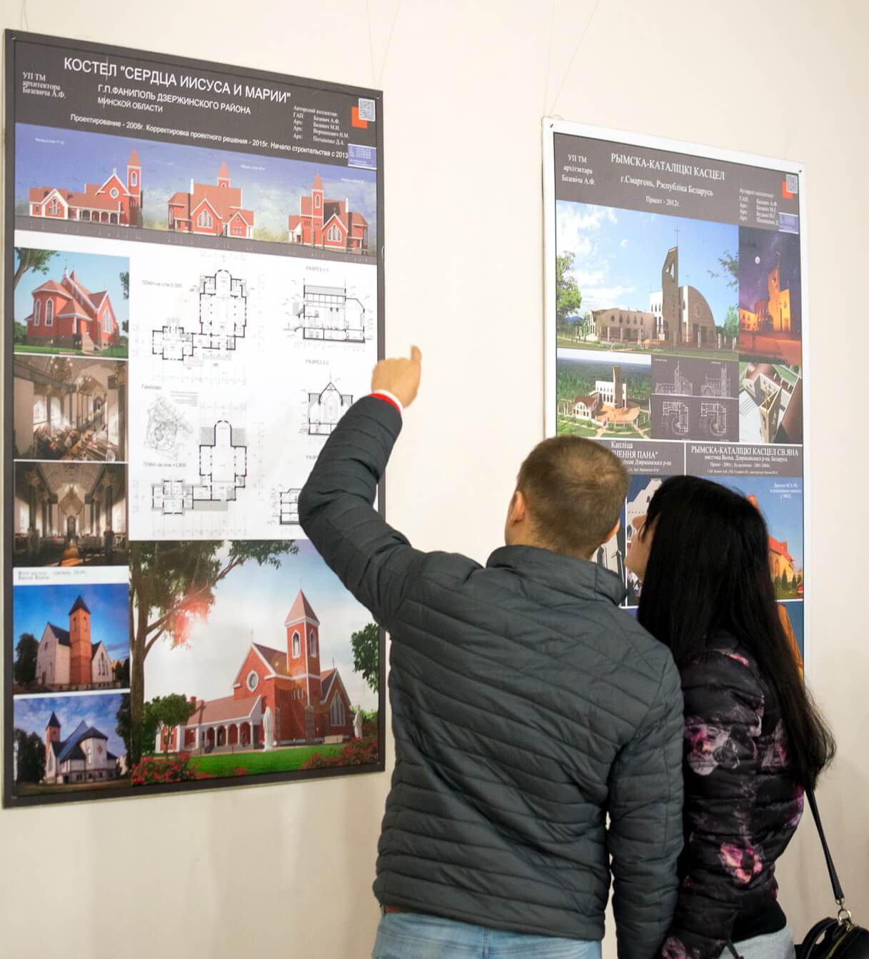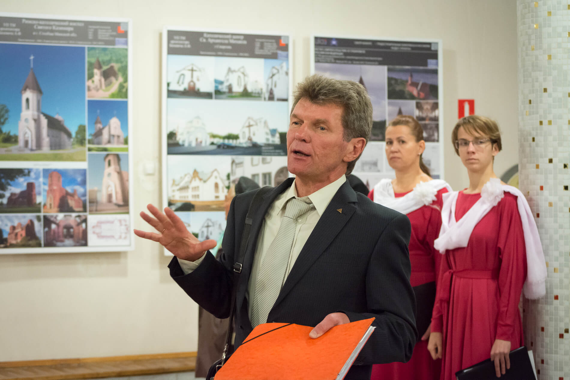 На выставке собравшимся коллегам и прихожанам костела показаны проекты и постройки зданий костелов не только в Беларуси, но и в России, выполненные автором за годы творческой работы. Рассказано о сложностях на пути создания объектов культовой архитектуры.