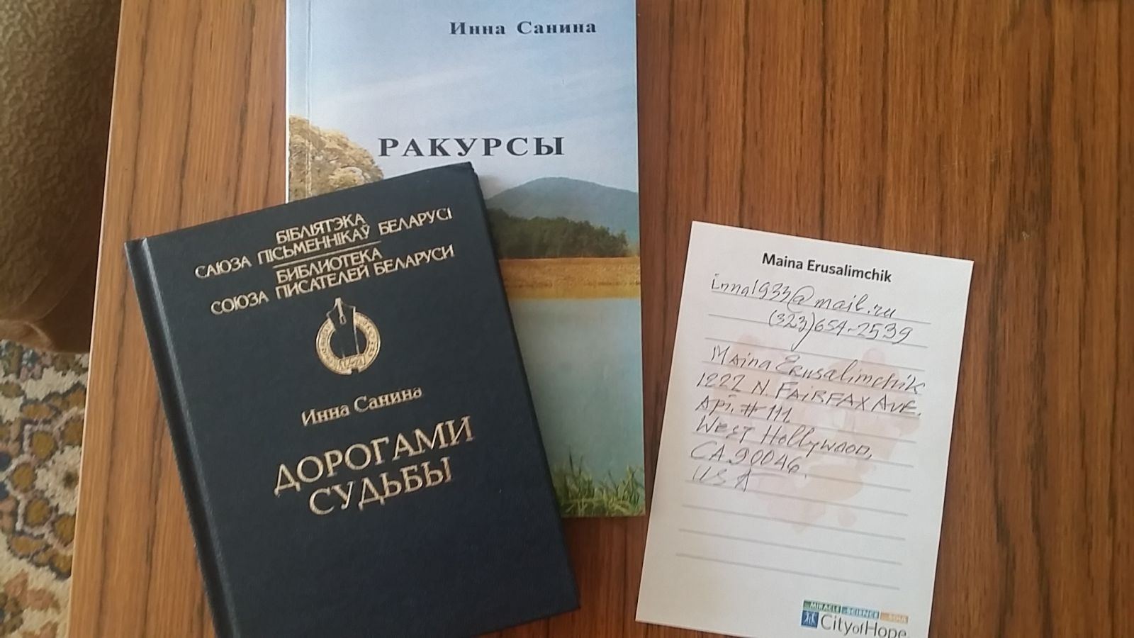 31 мая юбилей у члена БСА и Белорусского союза писателей Маины Ивановны Ерусалимчик. Старшее поколение белорусских архитекторов помнит прекрасные творческие лекции по истории искусств, которые читала в БПИ Маина Ивановна. Правление Белорусского союза архитекторов поздравляет Наину Ивановну с юбилеем, желает здоровья, долгих лет успешной, разносторонней творческой деятельности. и награждает юбиляра медалью "За преданность архитектуре и творческие достижения", а 5 июня её будут чествовать в Белорусском союзе писателей. Стихи юбиляра, изданные в разных странах под псевдонимом Инна Санина в библиотеке БСА.