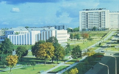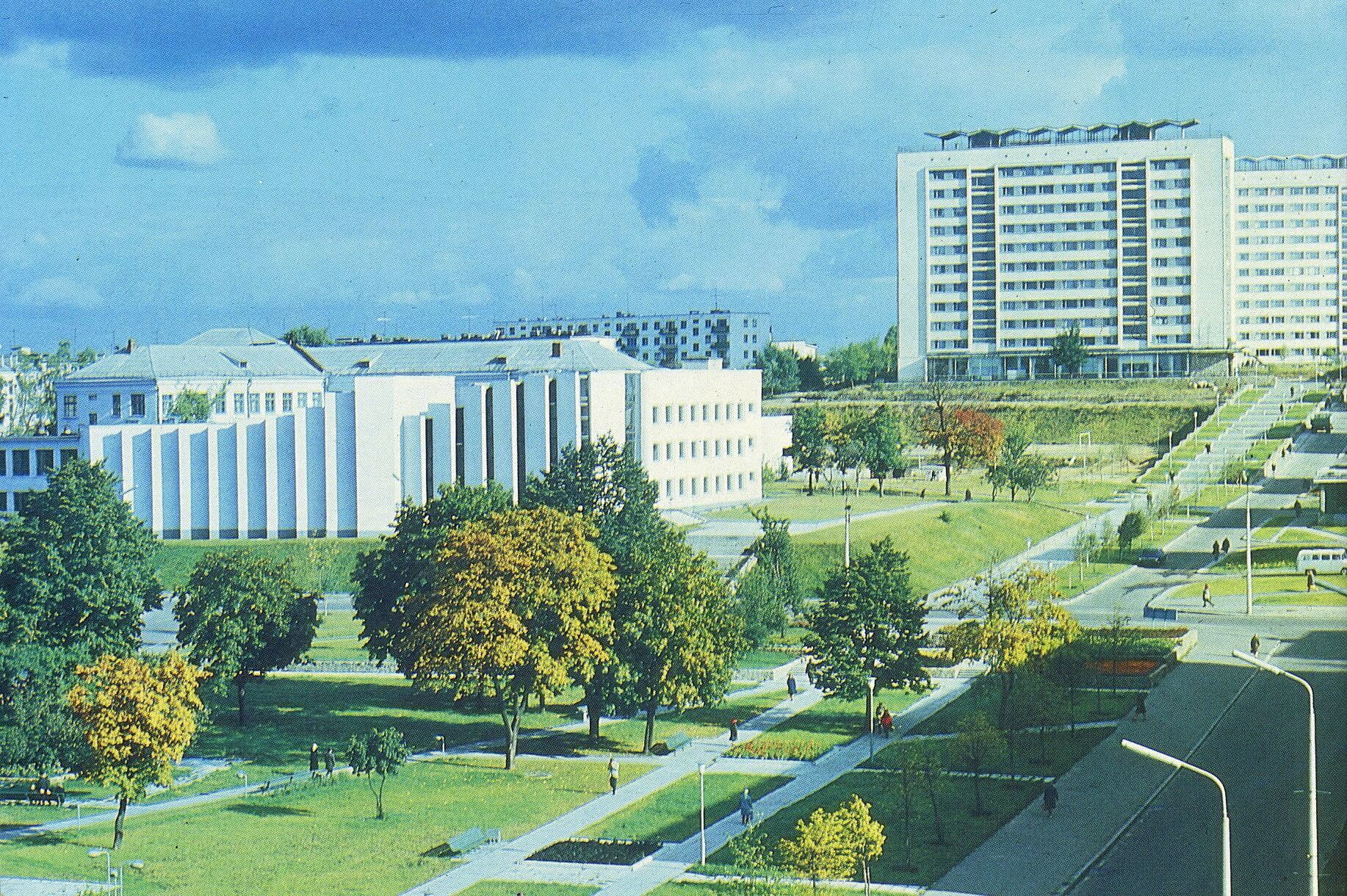 - Нашу прогулку можно начать с площади Независимости, где отец в соавторстве с Сергеем Мусинским запроектировал здание Мингорисполкома и корпус гостиницы «Минск», выходящий своим фасадом на сквер возле Красного костела, - рассказывает Александр Сысоев. - Здание горисполкома появилось в 1963 году и стало в то время образцом современной архитектуры. Рассказывали, что оно произвело сильное впечатление на приехавшую тогда в Минск немецкую делегацию.