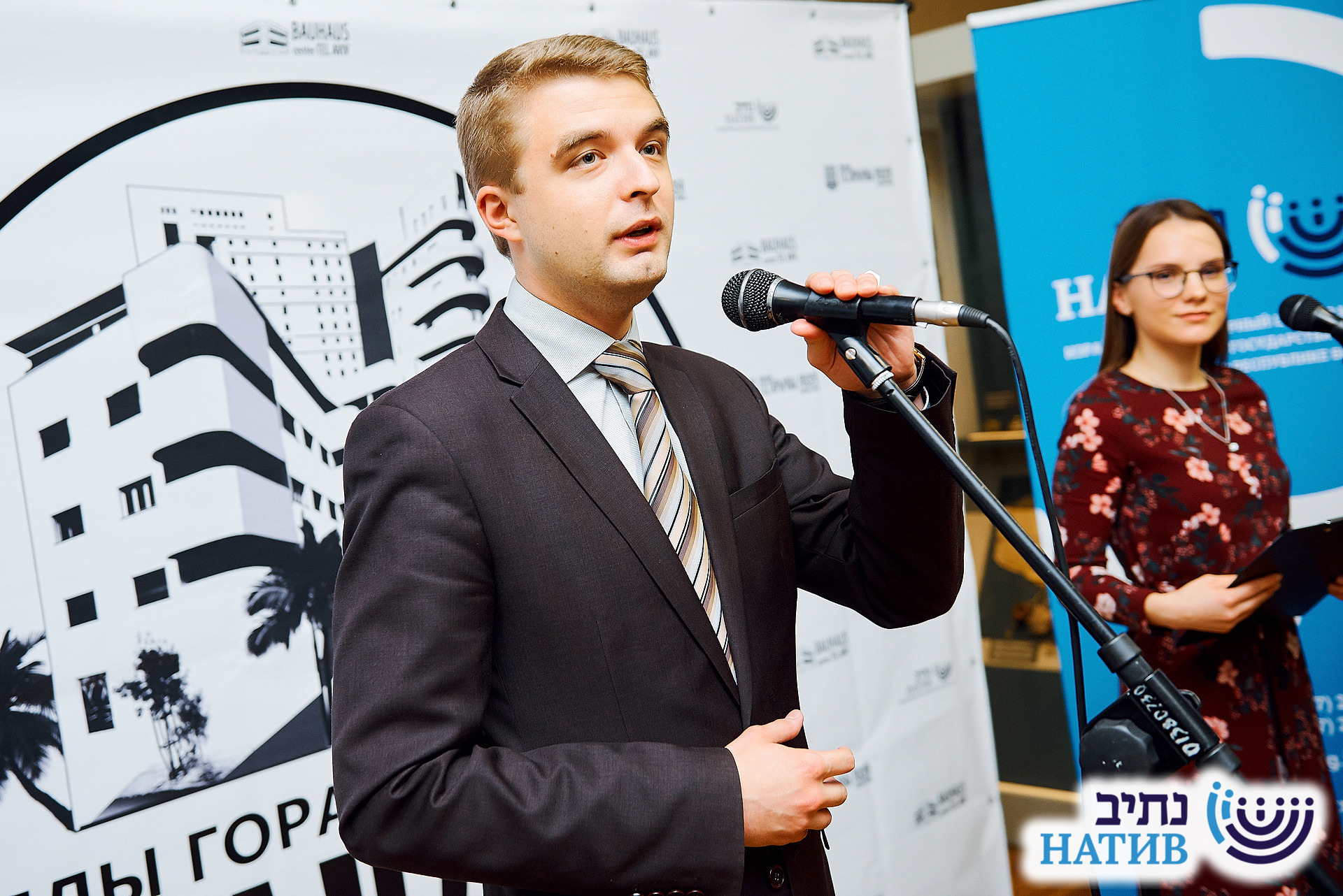 Выставку «BAUHAUS белы горад Тель-Авива» вначале предполагалось разместить в Республиканском доме архитектора, в рамках фестиваля «Архитектурная осень 2019», но из-за отсутствия выставочных площадей (всё стены занимает выставка конкурса «Леонардо-2019») эту выставку пришлось разместить рядом по ул. Карла Маркса.