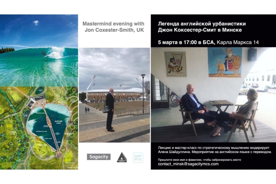 Лекция и мастер-класс по стратегическому мышлению от английского урбаниста Джона Коксестер-Смит и Алены Шайдуллиной в Белорусском Союзе Архитекторов 5 марта 2020г. в 17.00 (г. Минск, ул.К.Маркса, 14, конференц-зал, 2 этаж).
