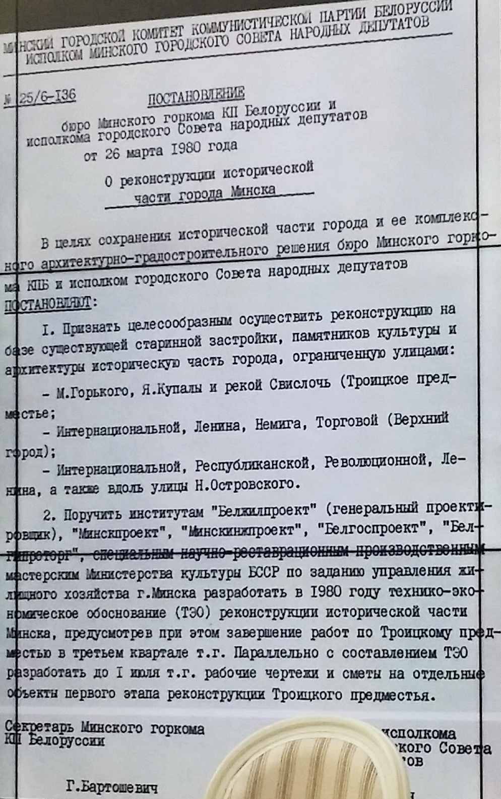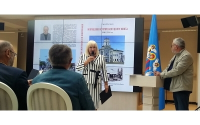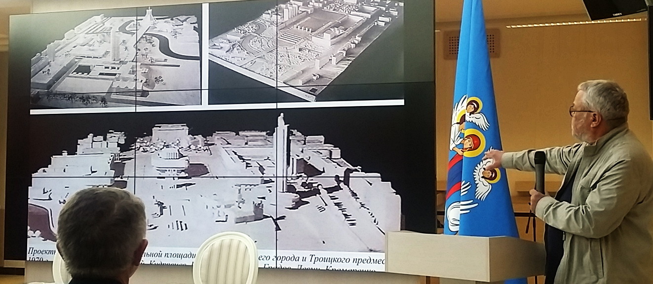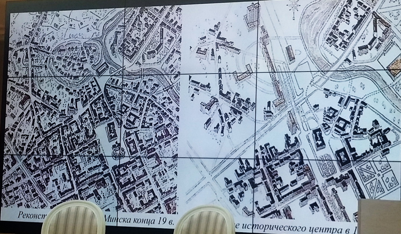 Собравшимся коллегам и гостям города были показаны проекты ведущих зодчих 60-70 годов ХХ века, которые предусматривали полный снос исторического центра Минска. Рассказано на примерах, как постепенно менялось осознание, что свое историческое прошлое и его материальное воплощение (архитектуру) надо сохранять для будущих поколений.
