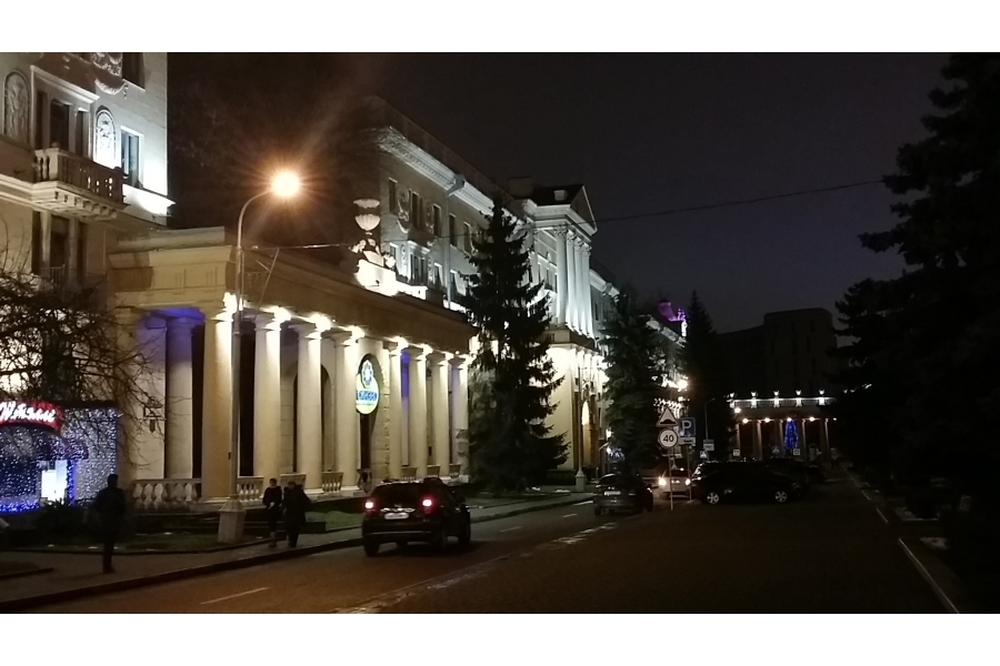 И теперь, этим летом 2004 года, уже в пятый раз мы с моим супругом посетили Минск. Теперь мы прибыли из Литвы, погостив перед тем в санатории “Друскеникай”. Ехали до Минска на такси и радовались белорусским дорогам, которые в наши давнишние времена своей всегдашней разухабетостью очень отличались даже от литовских... Вечерело. Мы вьезжали в Минск через юго-западный пригород в районе улицы Притыцкого. В лучах заходящего солнца, сияя светлыми красками, предстал пред нами ещё строящийся, но уже обживаемый огромный жилой массив, где чётко угадывалась благоустраиваемая “среда обитания” (так мы называем согласно архитектурной терминологии жилые человеческие поселения...). А потом мы ехали по центральным улицам уже вечернего города, который приветливо зажигал огни, и любовались подсветкой главных фасадов зданий – освещением, украшающим ночной город и сообщающим ему некий новый жизнерадостный смысловой подтекст.