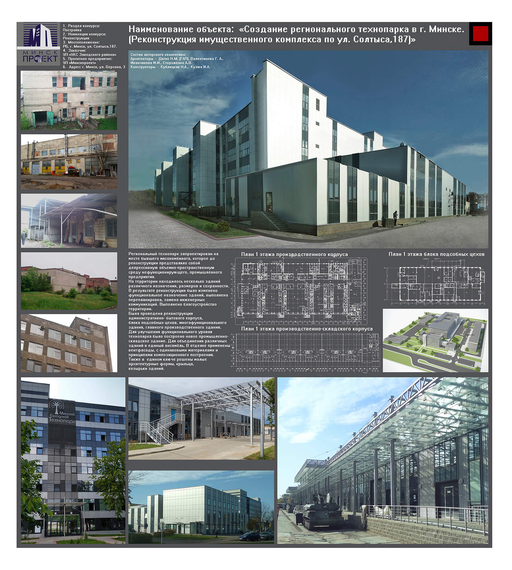 Малый «ГРАН-ПРИ» за работу в разделе «Проект» Присудить творческому коллективу в составе: Гайкович С.В.(архитектурное бюро "Студия 17" г.Санкт-Петербург), ОАО "Институт Минскгражданпроект" Бобрик В.А., Лавринович Е.Р., Авдеенко В.В., Писаренко А.В.