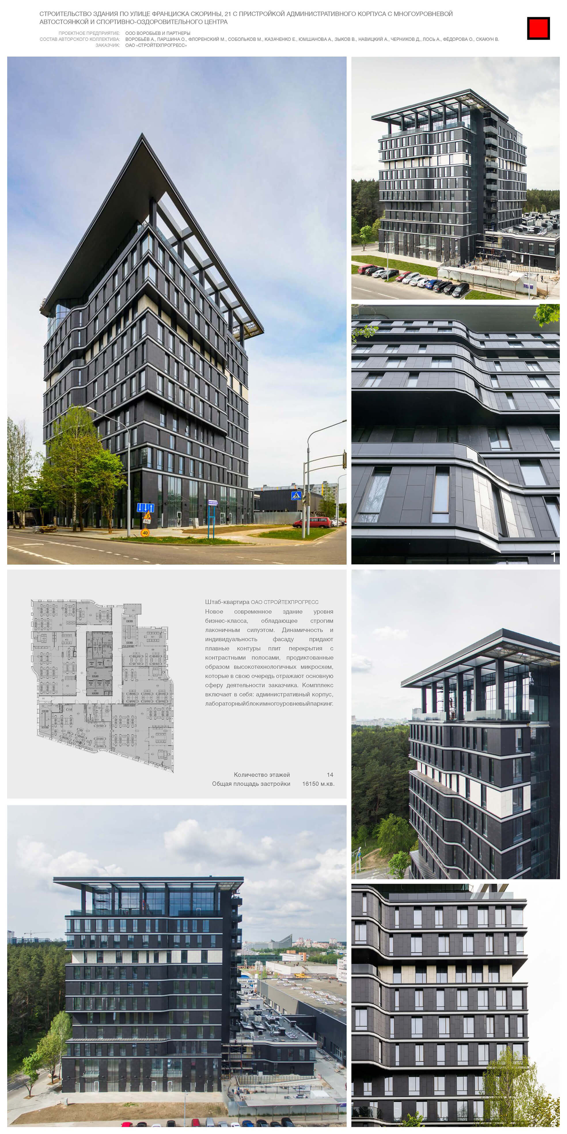 за реализацию проекта «Строительство здания по ул. Франциска Скорины, 21 с пристройкой административного корпуса с многоуровневой автостоянкой и спортивно-оздоровительного центра»