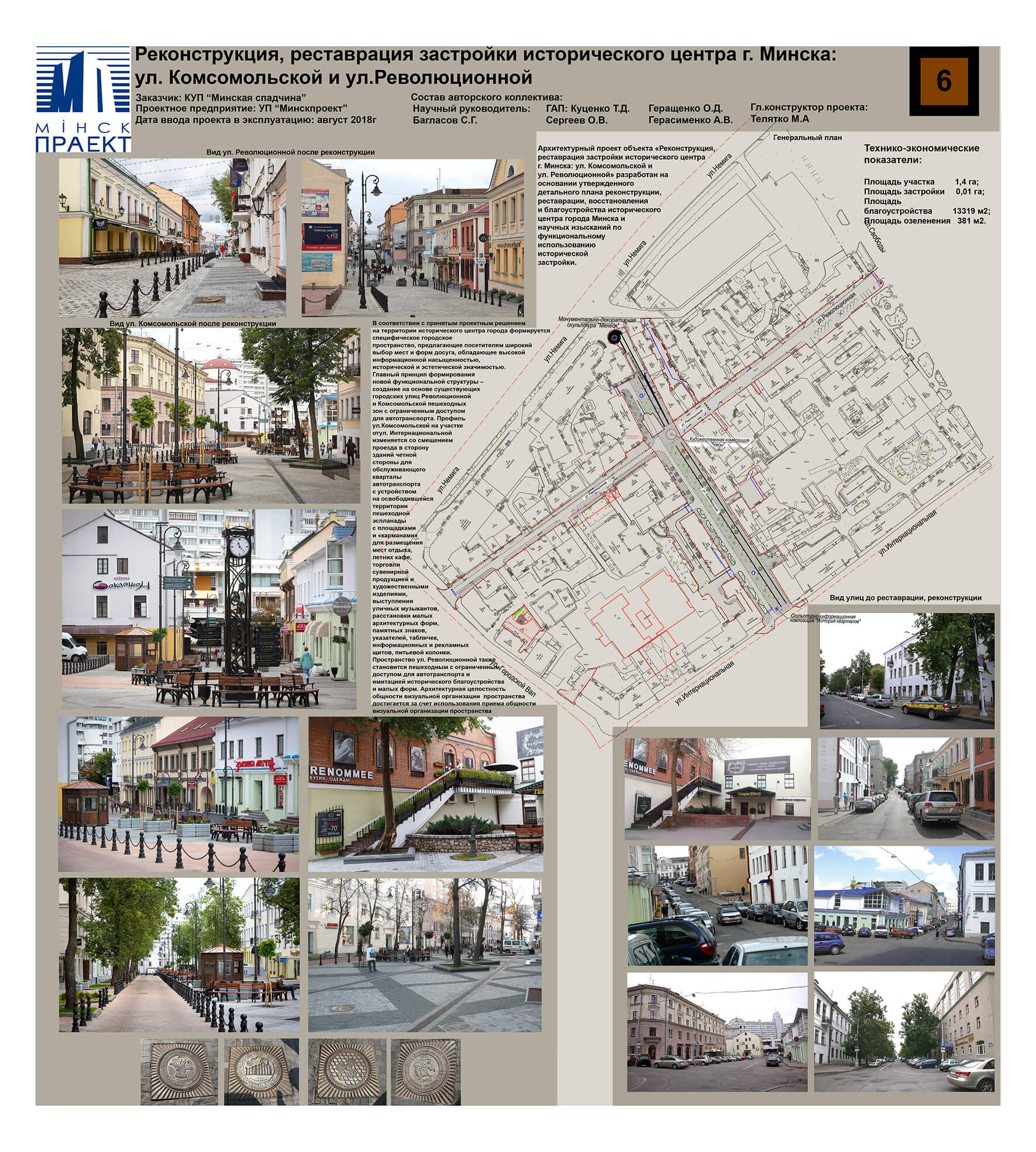 в составе: Научный руководитель: Багласов С.Г. Архитекторы: Куценко Т. Д. (ГАП), Сергеев О.В., Геращенко О.Д., Герасименко А.В.; ГКП Телятко М.А.за реализацию проекта «Реконструкция, реставрация застройки исторического центра г.Минска: ул. Комсомольской и ул. Революционной»