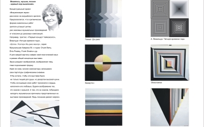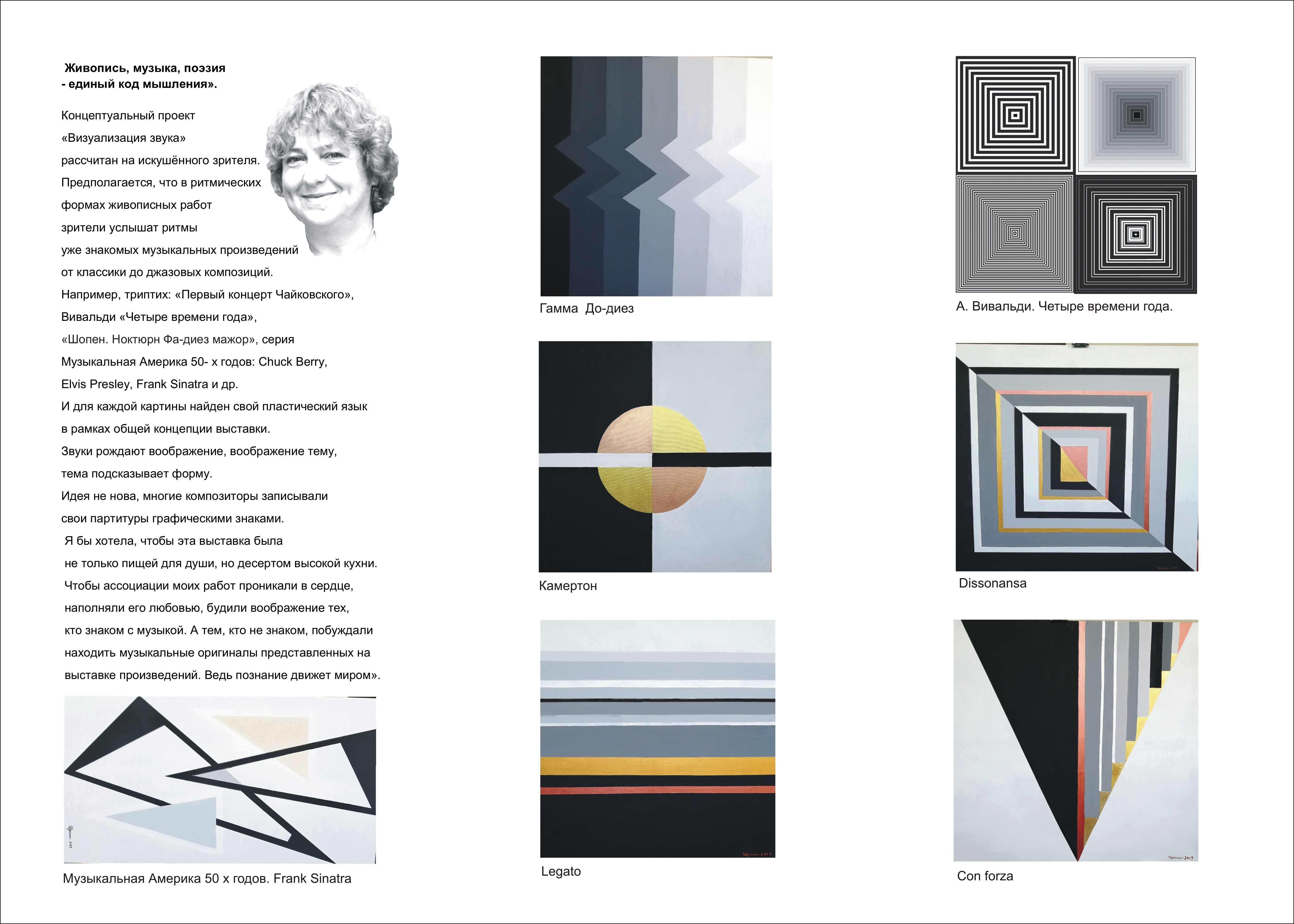 У экспазіцыю яе канцэптуальнага праекта ўвайшло каля 30 работ (жывапіс, кампутарная графіка, шкло, інсталяцыі), большасць з якіх выканана ў 2019 годзе. Усе яны прысвечаны музыцы і разлічаны на спрактыкаванага гледача. Мяркуецца, што ў рытмічных формах жывапісных работ гледачы пачуюць рытмы ўжо знаёмых музычных твораў ад класікі да джазавых кампазіцый. Напрыклад, Трыпціх “Першы канцэрт Чайкоўскага”, Вівальдзі “Чатыры пары года”, Шапэн “Накцюрн Фа-дыез мажор”, серыя “Музычная Амерыка 50-х гадоў”.