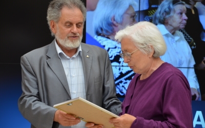 Правление БСА поздравило коллектив архив НТД с юбилеем. На собрании директору Запартыко Александру Михайловичу вручен памятный адрес, медаль «За преданность архитектуре». Решением правления старейшему сотруднику архива Галине Ивановне Шостак вручена Почетная грамота ОО «БСА».