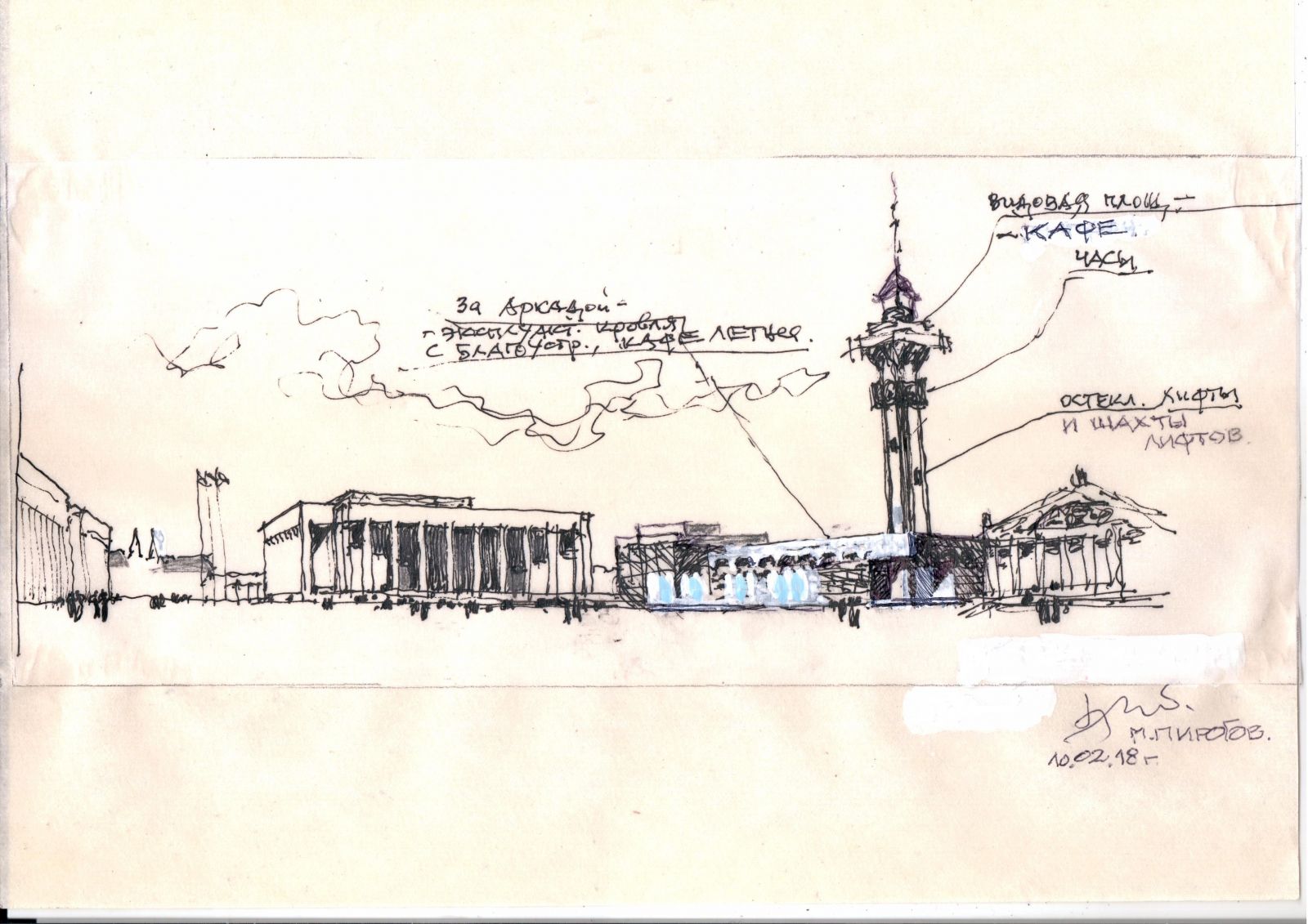 - В комплексе сооружения – крытая, видовая (обзорная) площадка на высотной конструкции (опоре), с 4-мя лифтами (малый грузовой, пассажирский, и 2 лифта в остекленных шахтах с остекленными кабинами);
